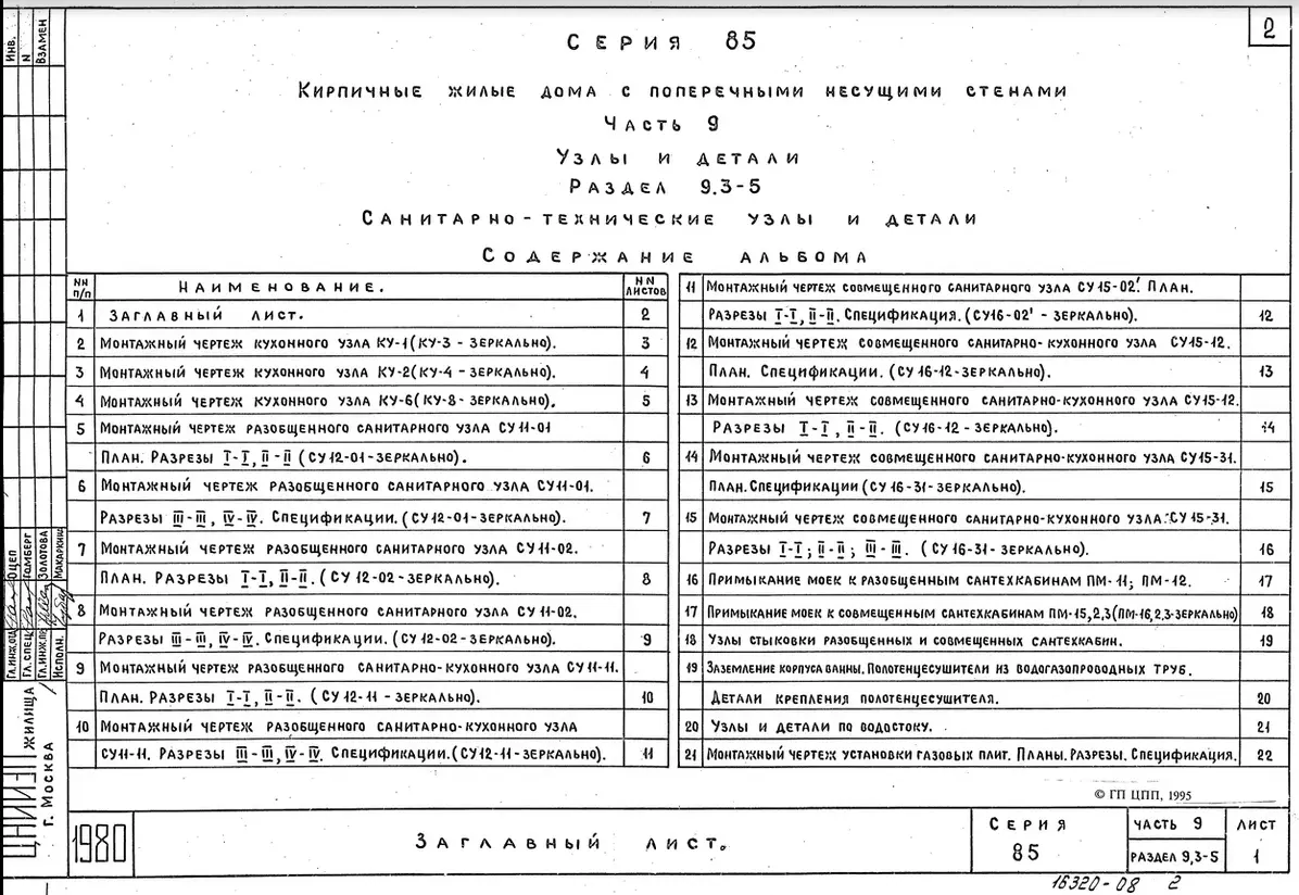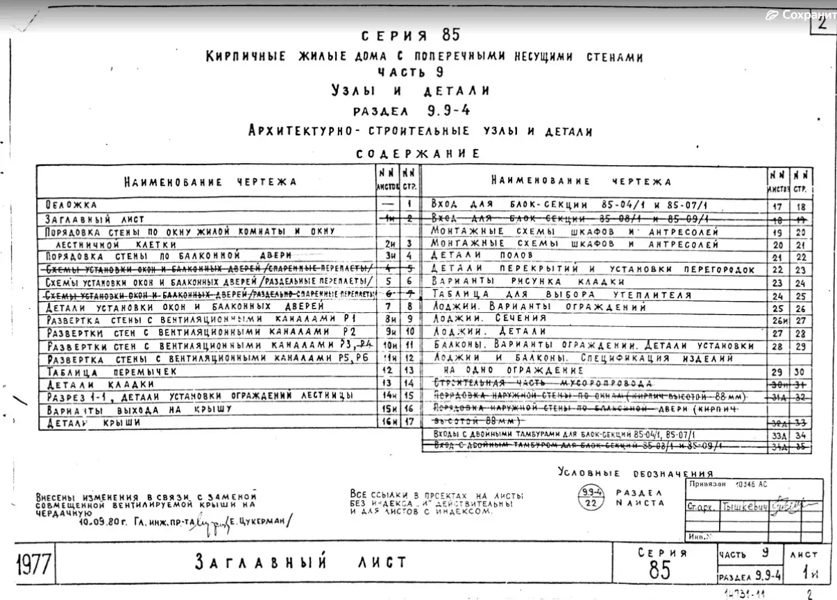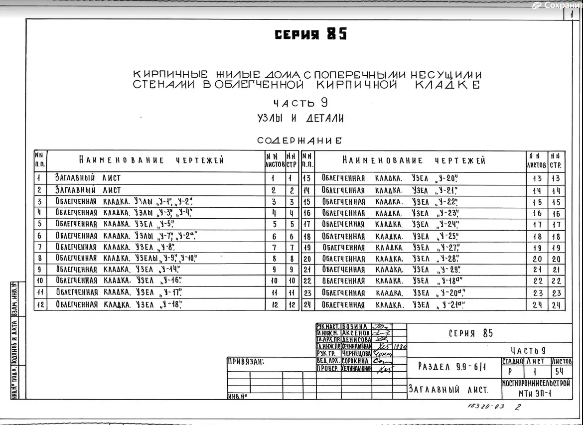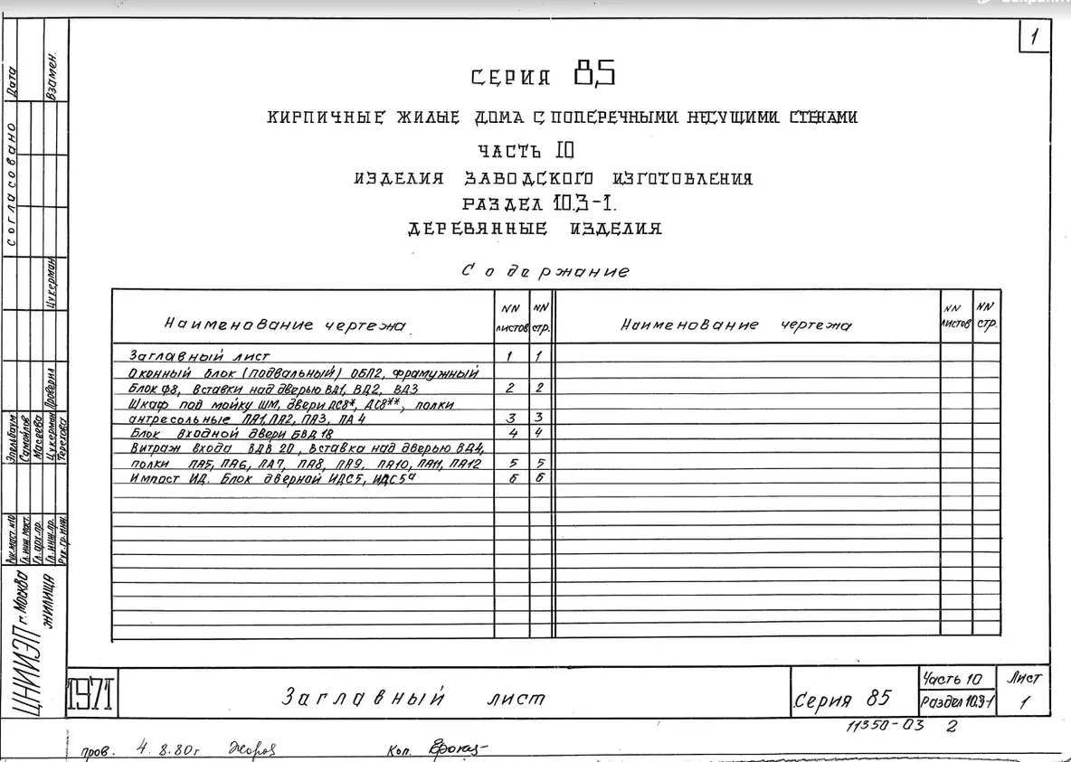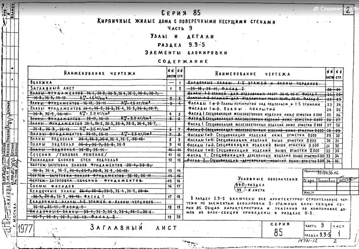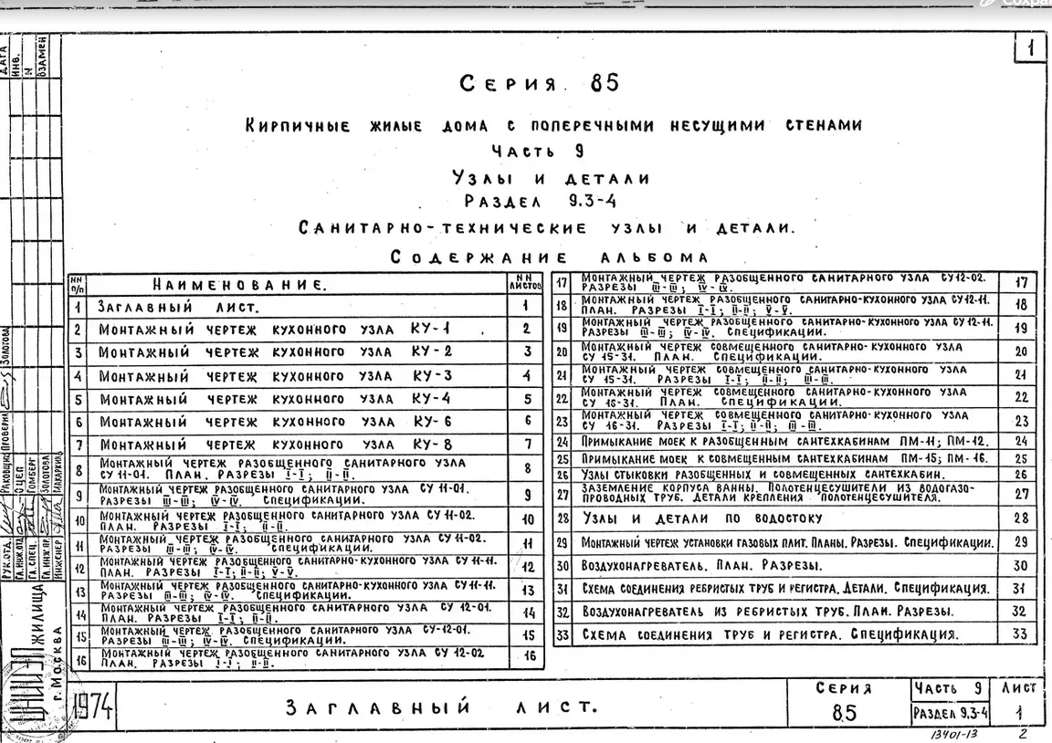 Серия 85 Кирпичные жилые дома и блок-секции с поперечными несущими стенами. Изделия к серии 85