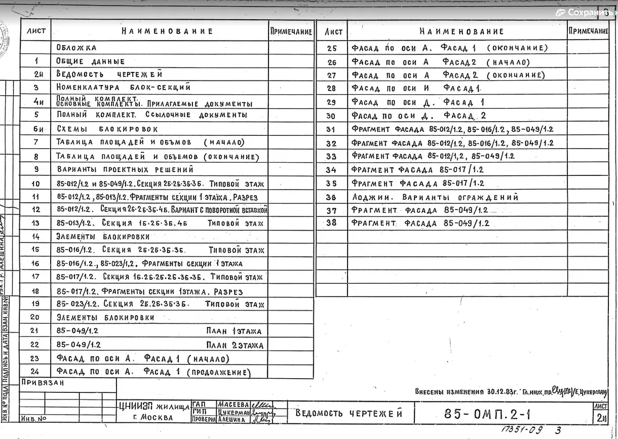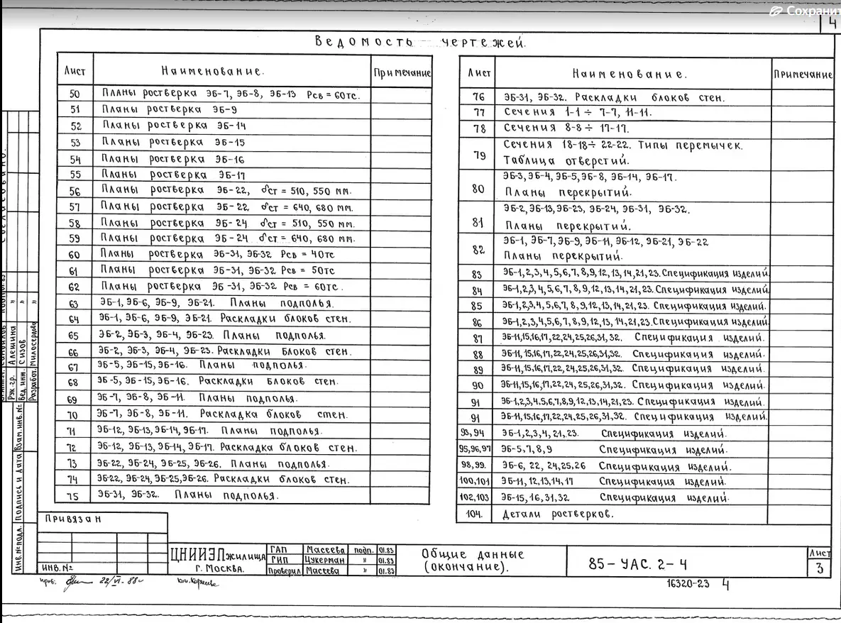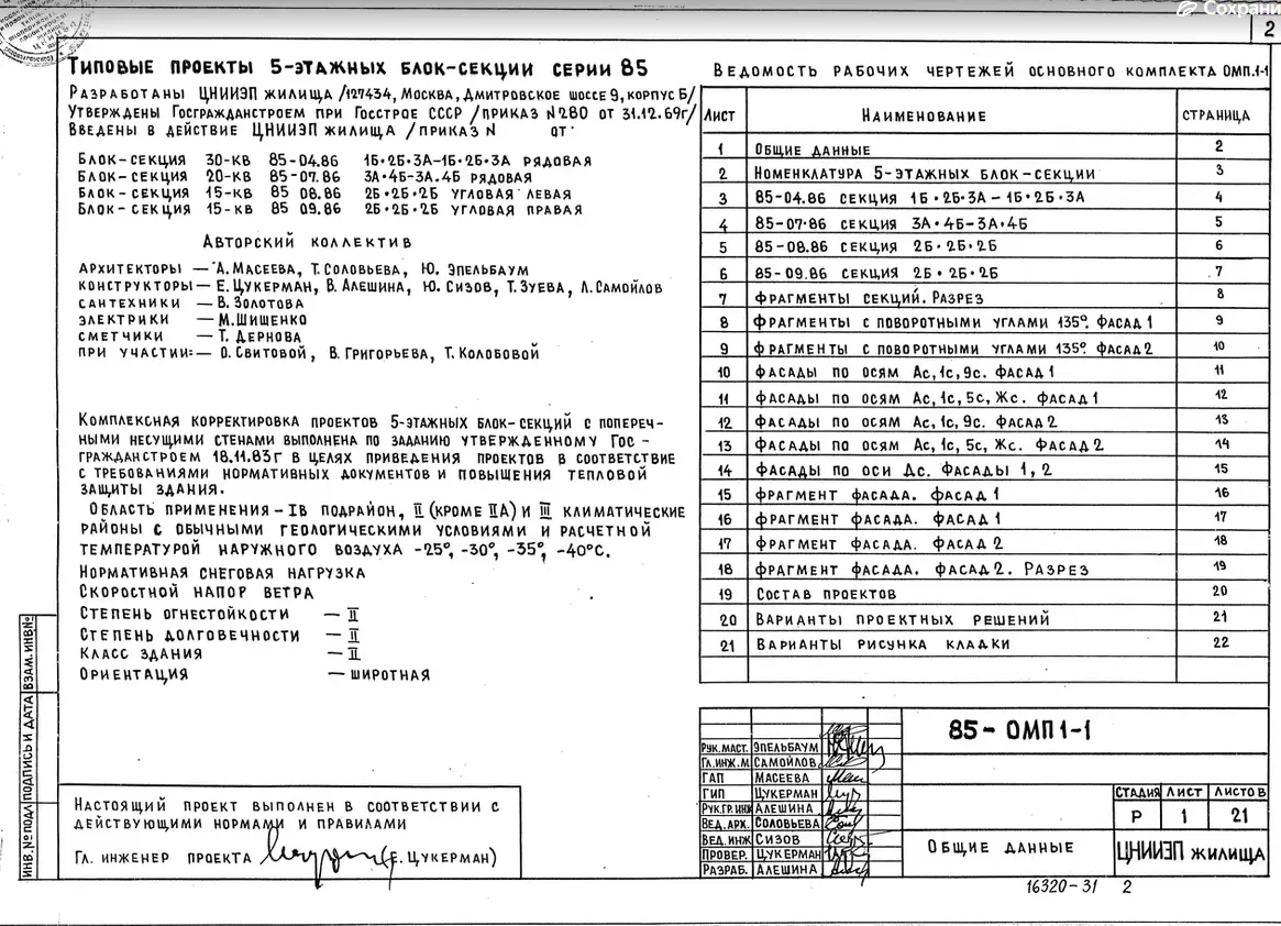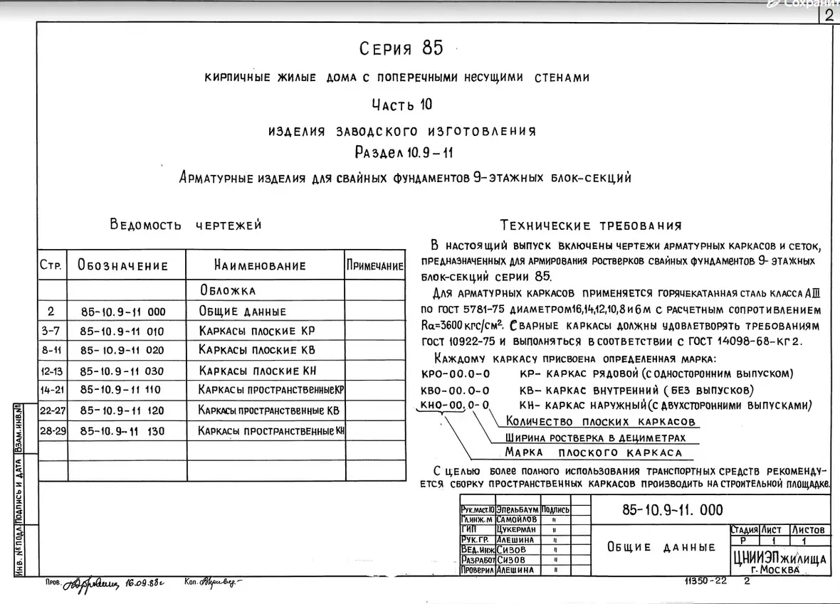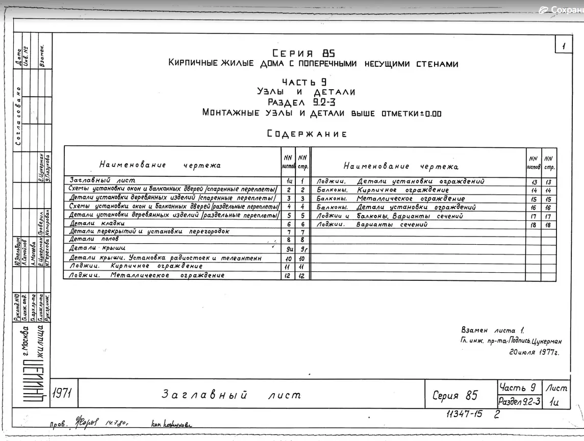 Серия 85 Кирпичные жилые дома и блок-секции с поперечными несущими стенами. Изделия к серии 85