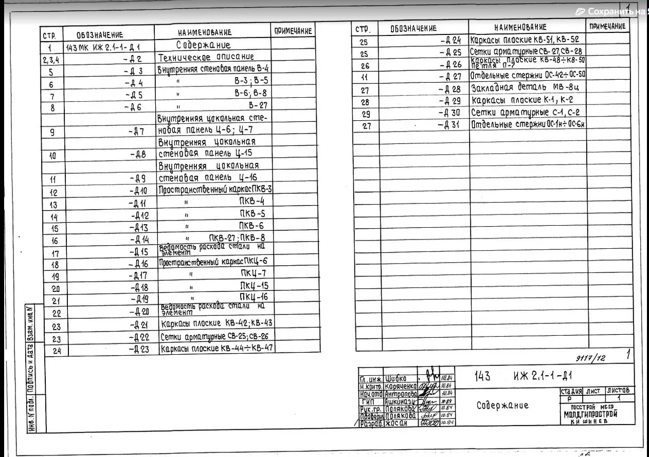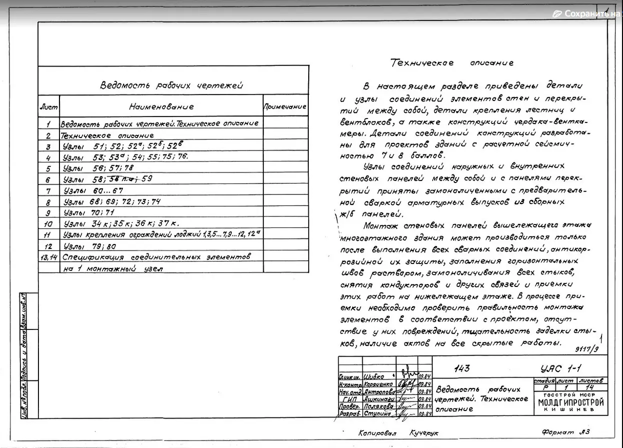 серия 143 9-ти и 5-ти этажные жилые дома для строительства молдавской ССР в районах с сейсмичностью 7-8 баллов Изделия к серии