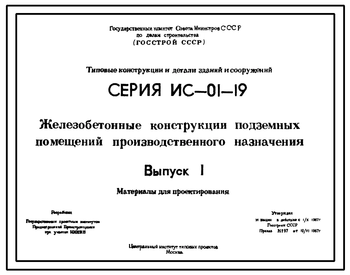 Серия ИС-01-19 Железобетонные конструкции подземных помещений производственного назначения. Рабочие чертежи.