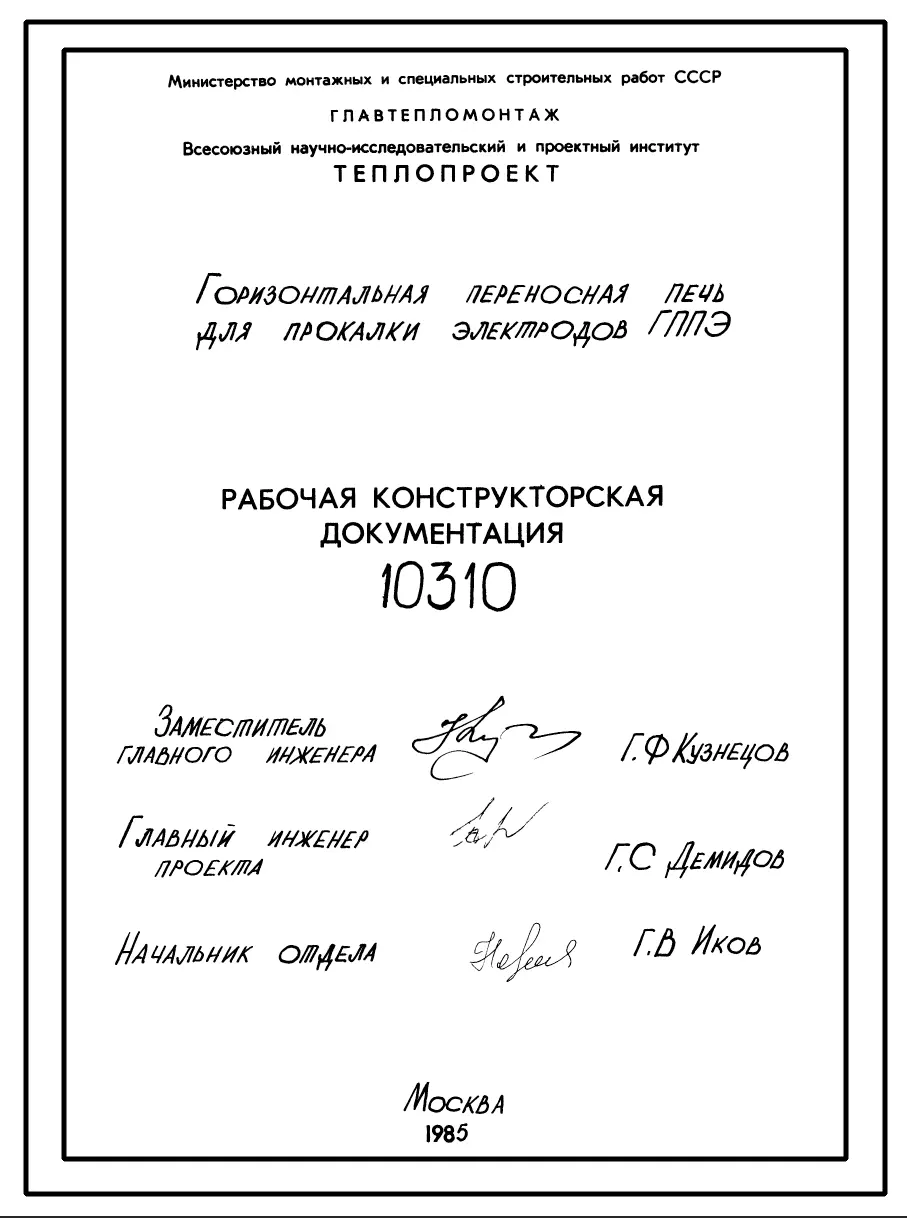 Проект 10310 Горизонтальная переносная электрическая печь марки ГППЭ для прокалки электродов. Конструкторская документация