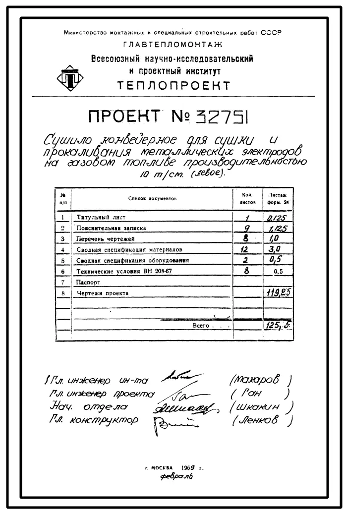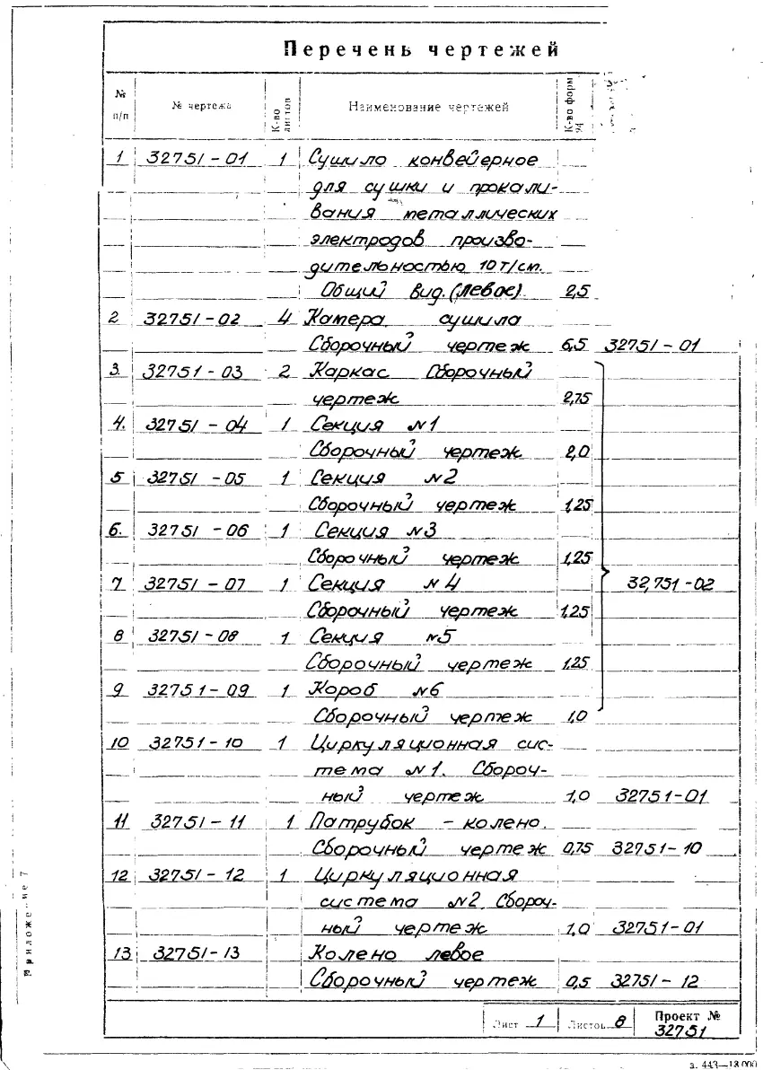 Проект 32751 Сушило конвейерное для сушки и прокаливания металлических электродов на газовом топливе производительностью 10 тонн в смену. Левое.