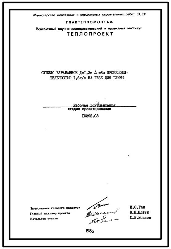 Проект 10292 Сушило барабанное Д=1.2 м; L=8 м производительностью 1.6 т/ч на газе для глины