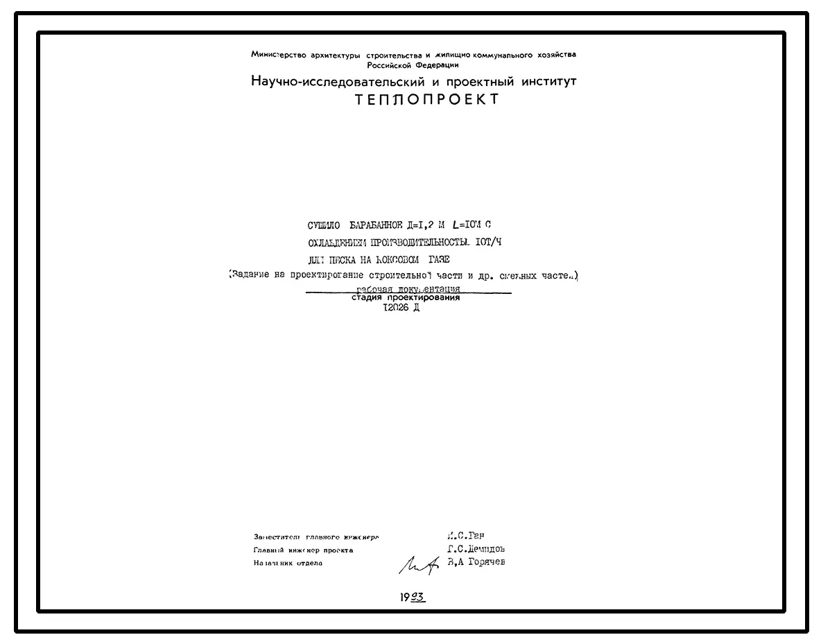 Проект 12026 Сушило барабанное Д=1.2 м L=10 м с охлаждением производительностью 10 т/ч для песка на коксовом газе