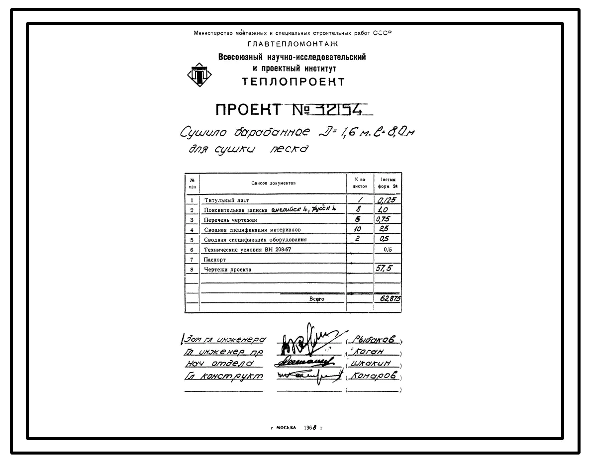 Проект 32154 Сушило барабанное Д=1.6 м L=8.0 м для сушки песка