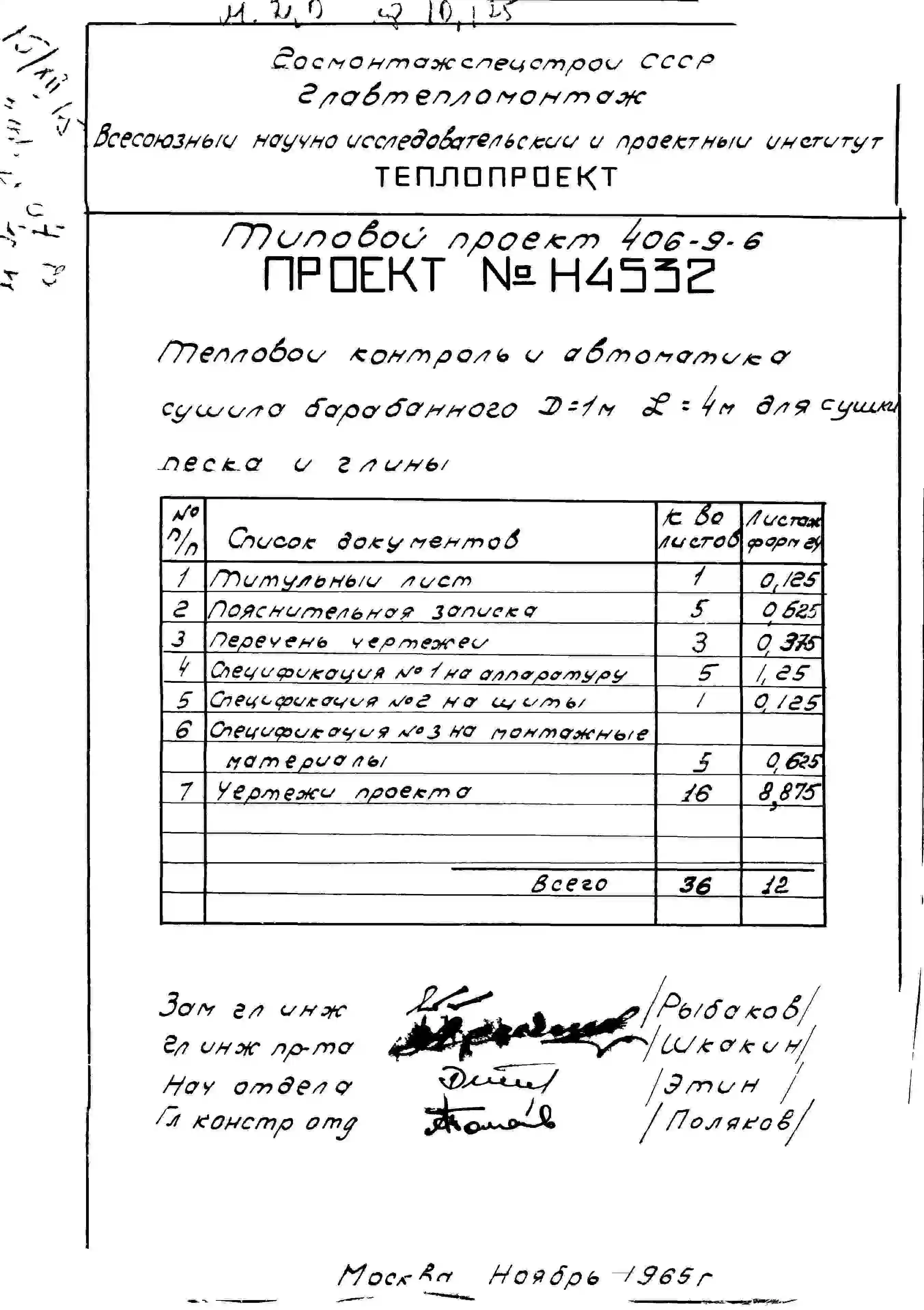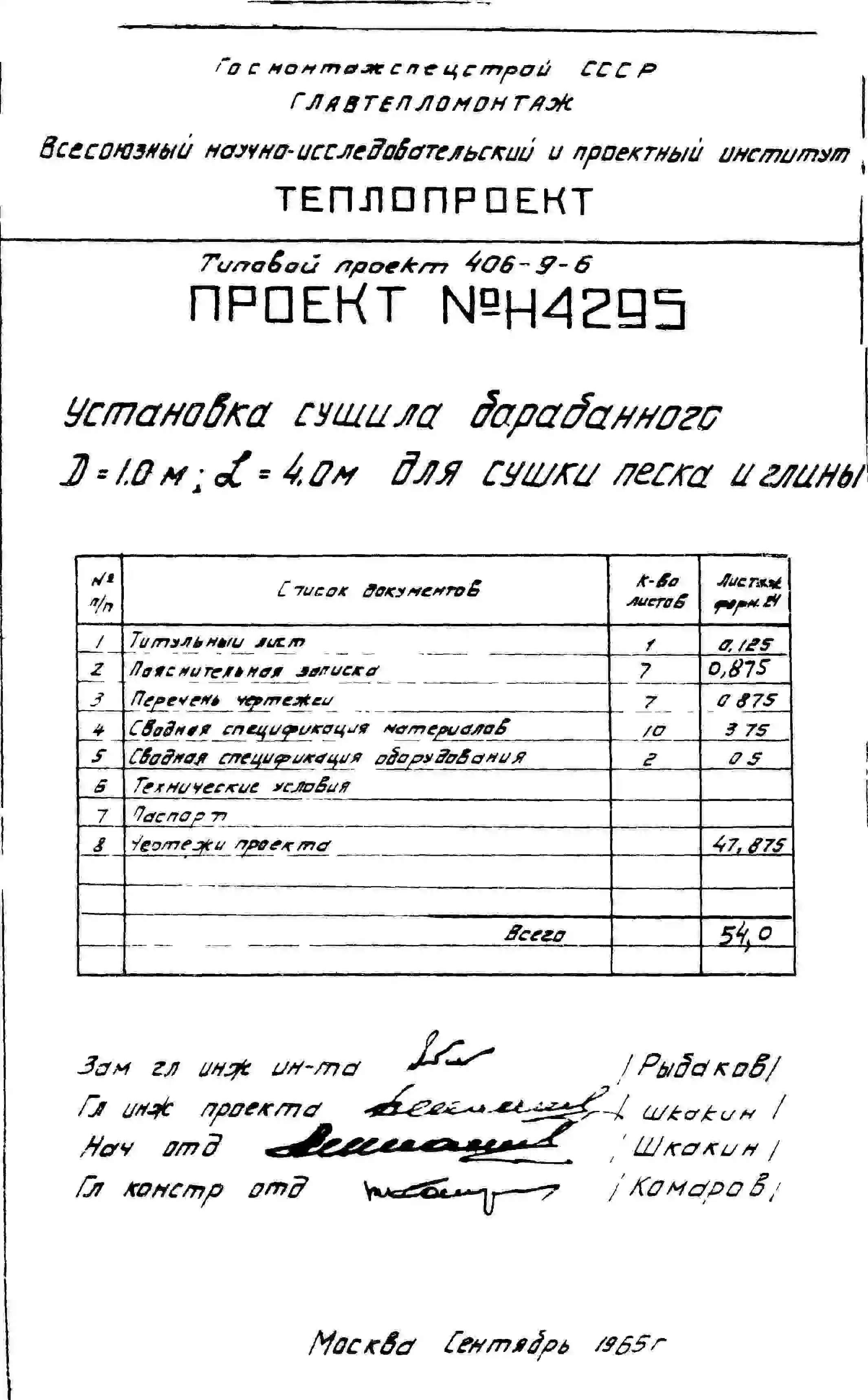 Типовой проект 406-9-6 Установка сушила барабанного Д=1м ,L=4м для сушки песка и глины без холодильника и для сушки песка с холодильником