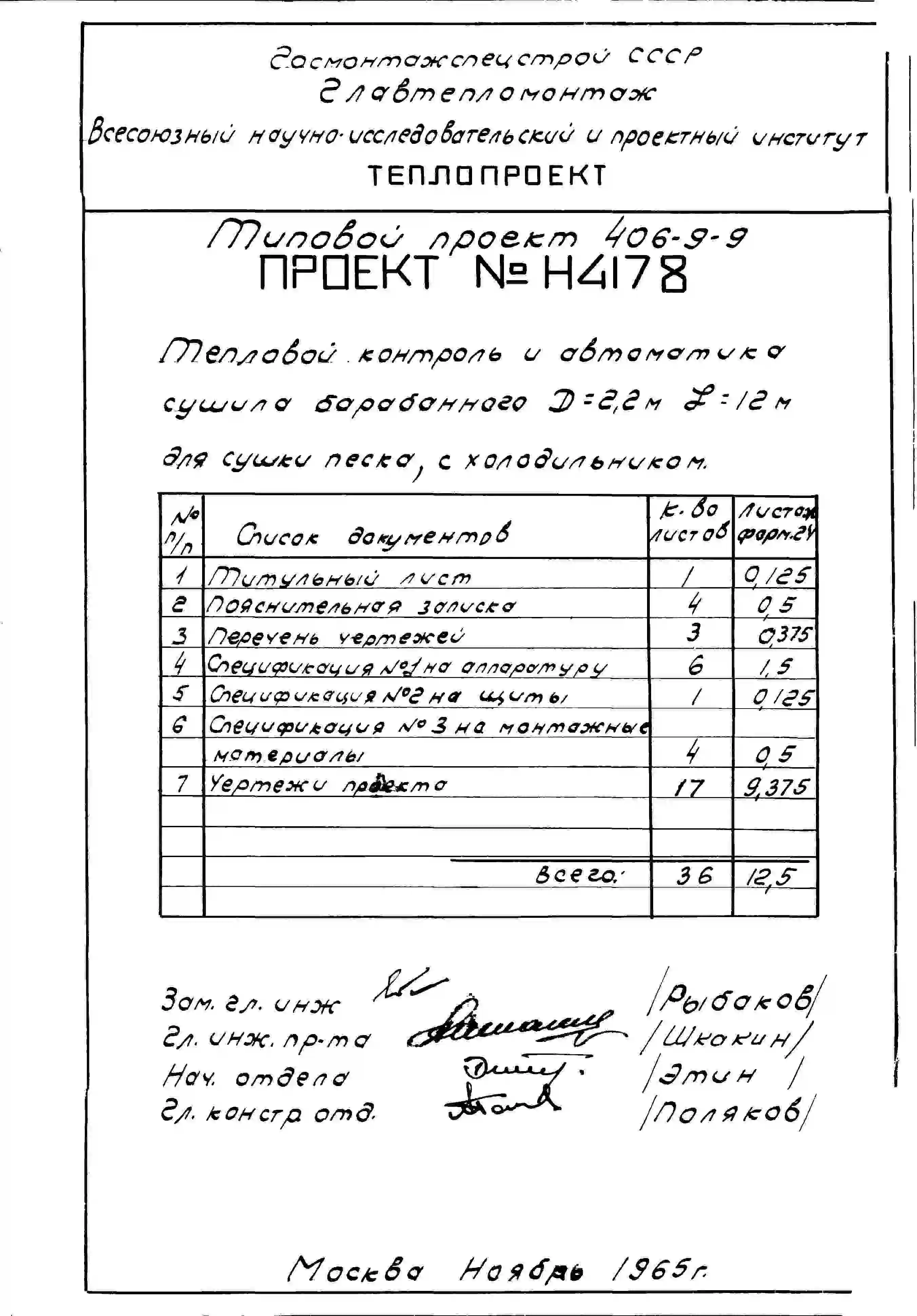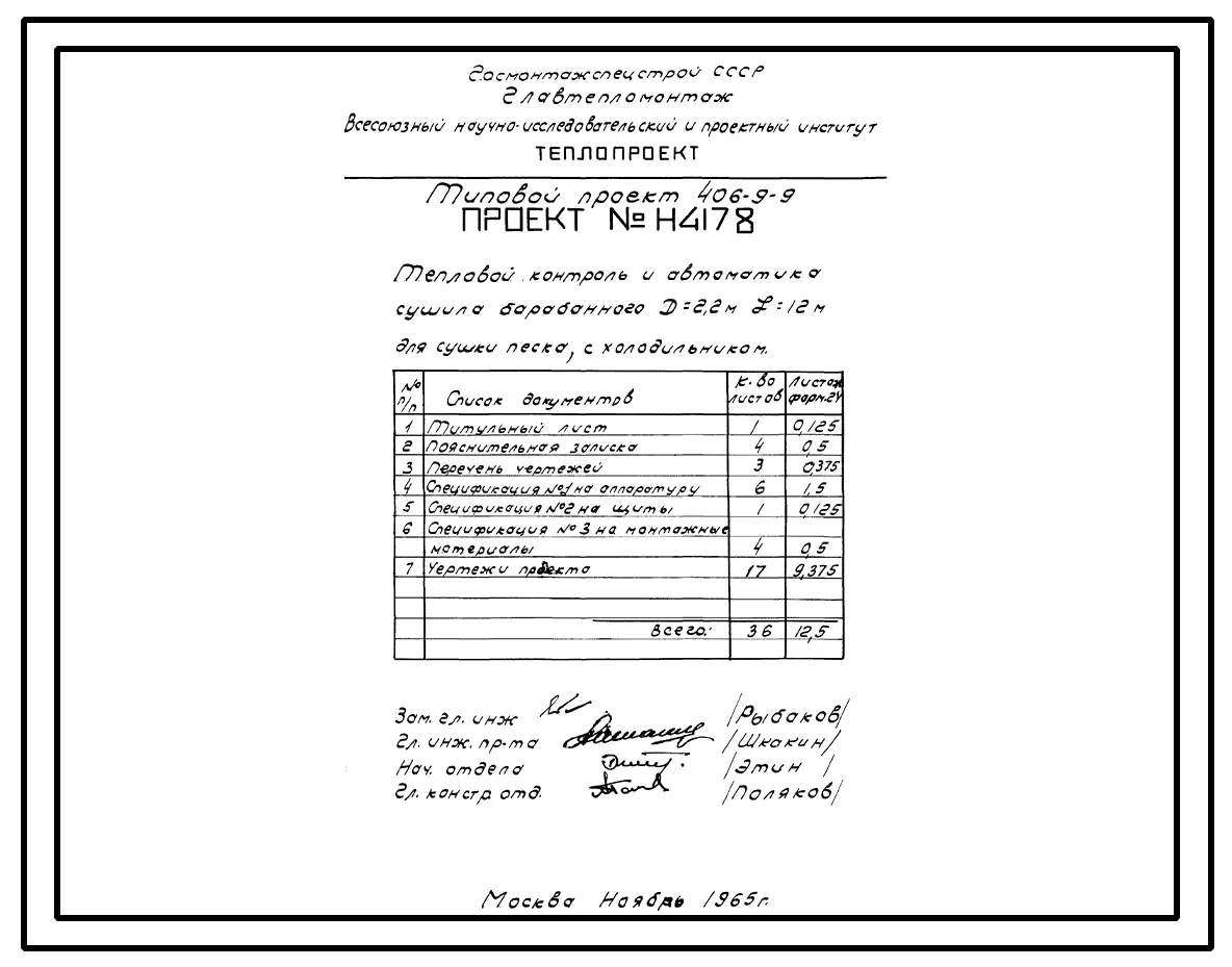 Типовой проект 406-9-9 Установка сушила барабанного Д = 2,2 м, L = 12 м для сушки песка и глины без холодильника и для сушки песка с холодильником