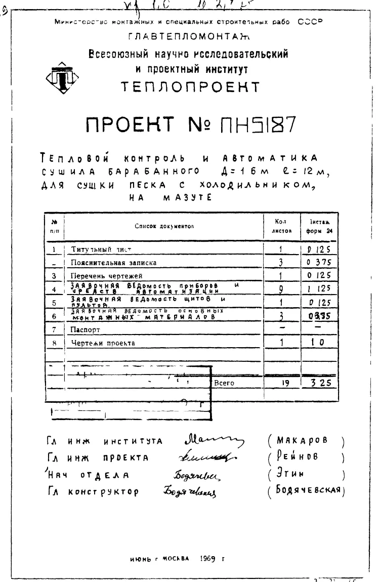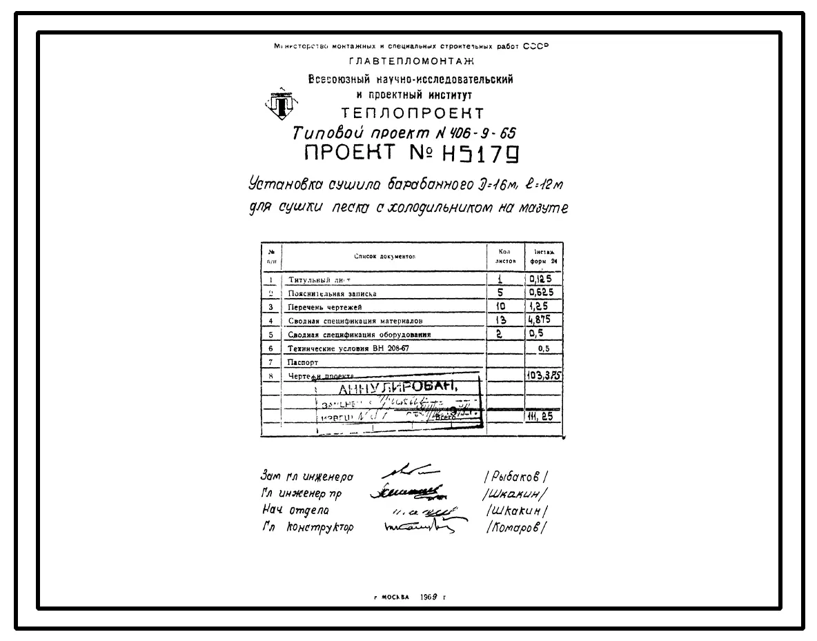 Типовой проект 406-9-65 Установка сушила барабанного Д=1,6 м, L=12 м для сушки песка (с холодильником) на газе и мазуте