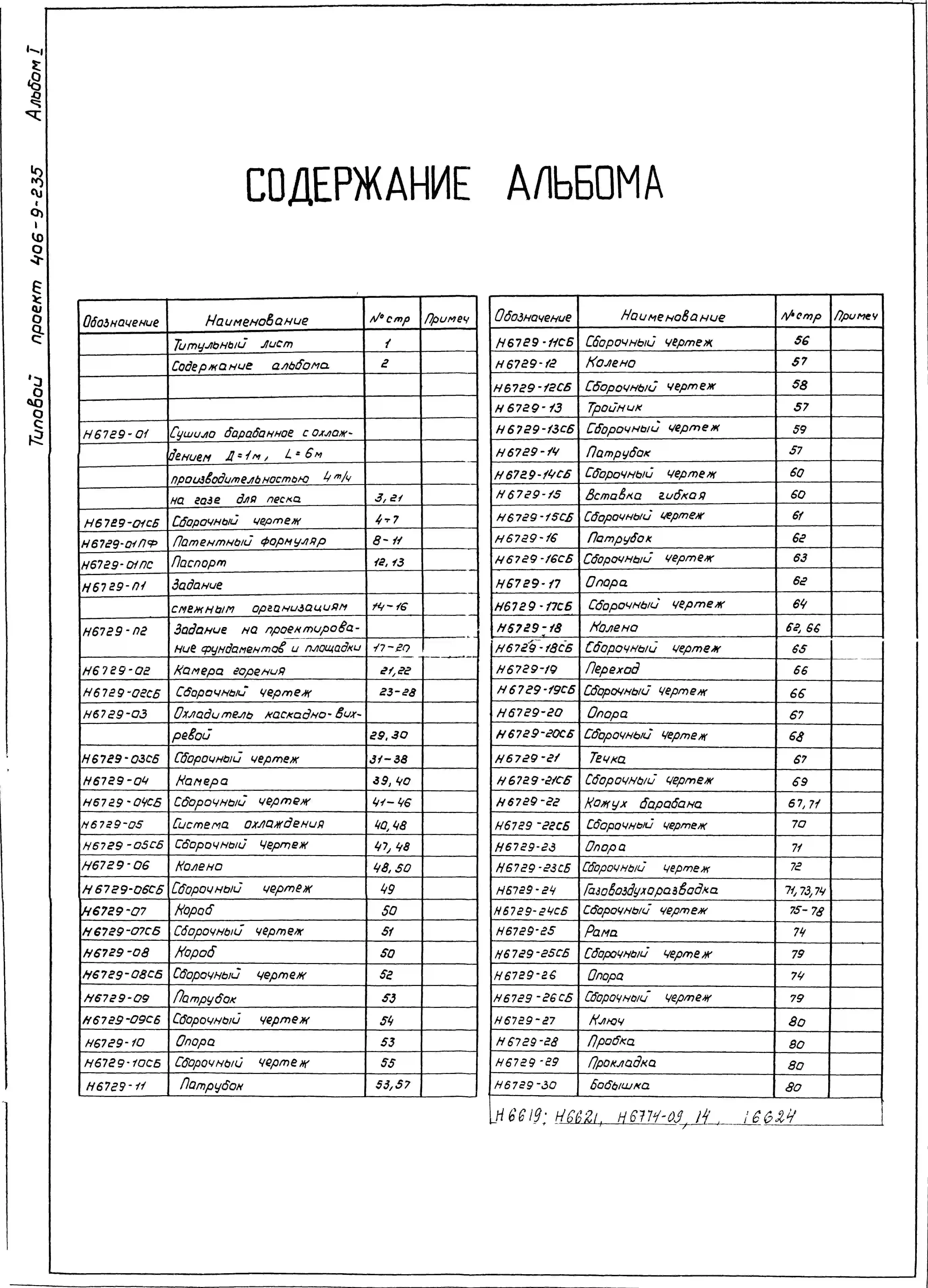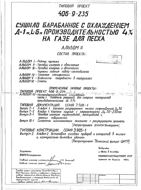 Типовой проект 406-9-235 Сушило барабанное с охлаждением Д=1 м, L=6 м производительностью 4 т/ч на газе для песка