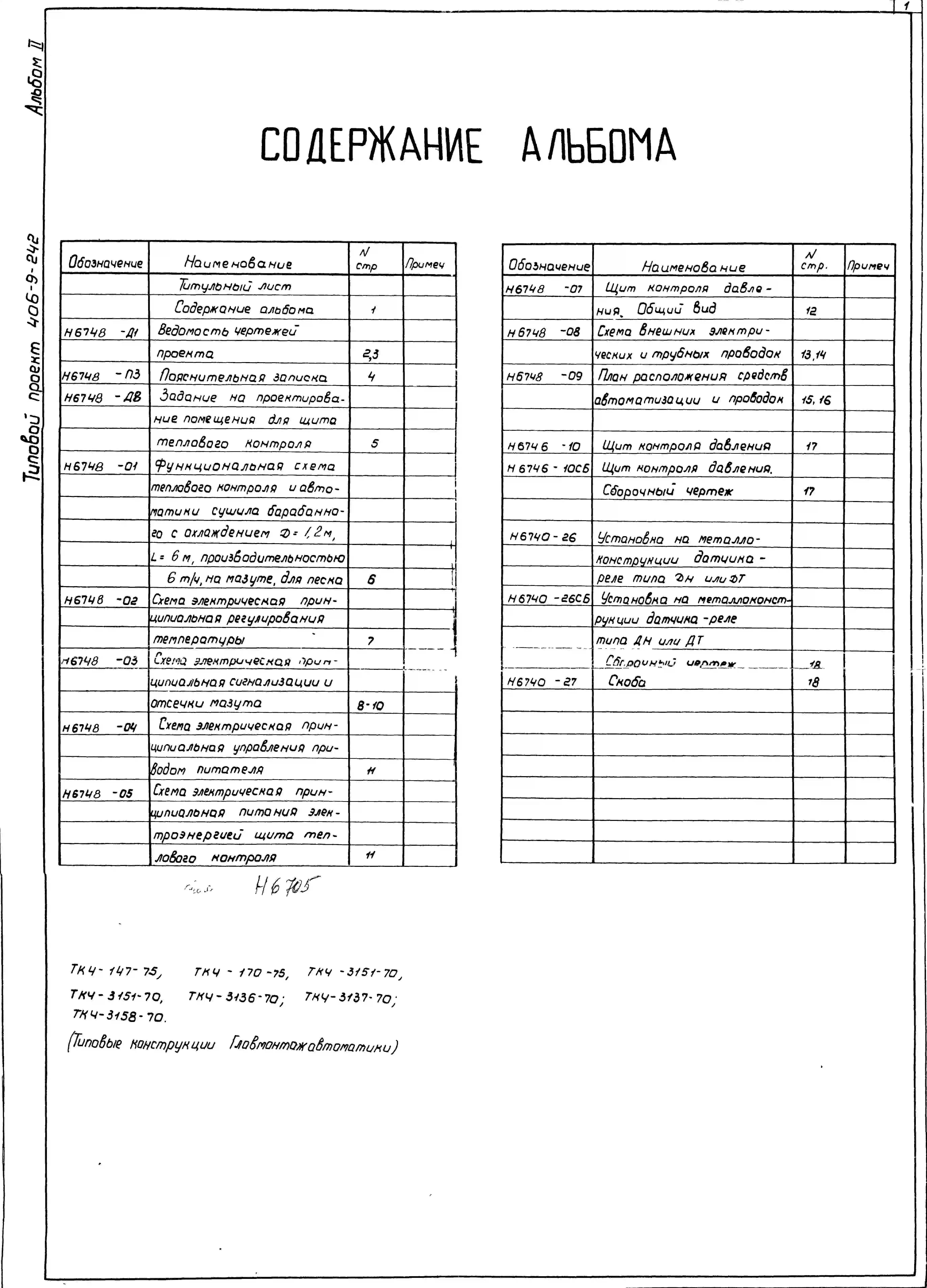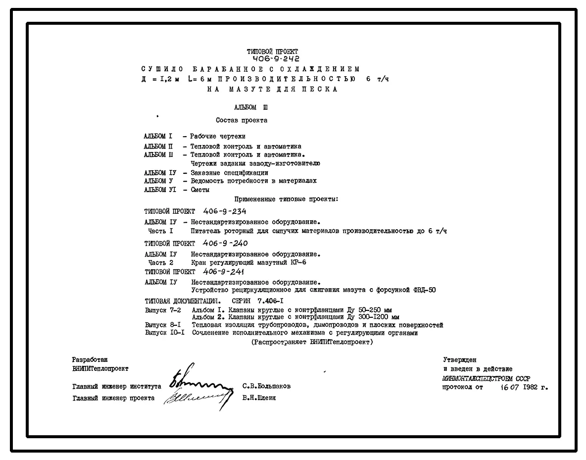 Типовой проект 406-9-242 Сушило барабанное с охлаждением Д=1,2 м, L=6 м производительностью 6 т/ч на мазуте для песка
