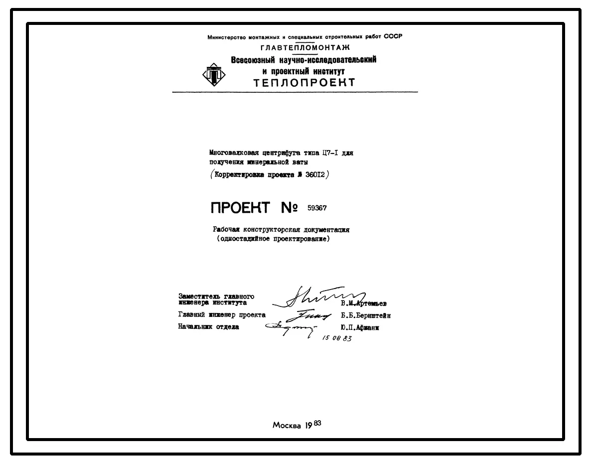 Проект 59367 Многовалковая центрифуга типа Ц7-1 для получения минеральной ваты
