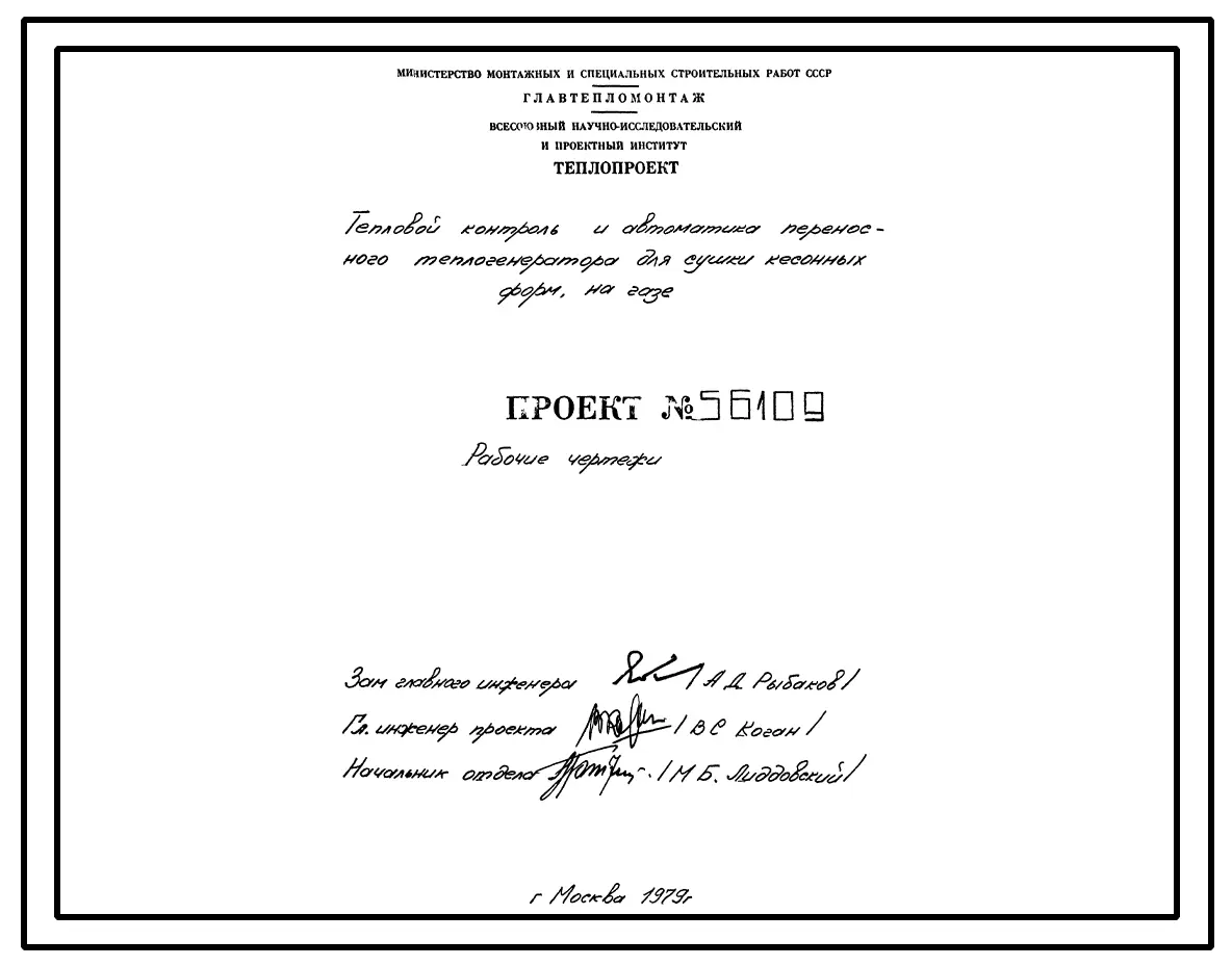 Проект 56109 Тепловой контроль и автоматика переносного теплогенератора для сушки кесонных форм, на газе