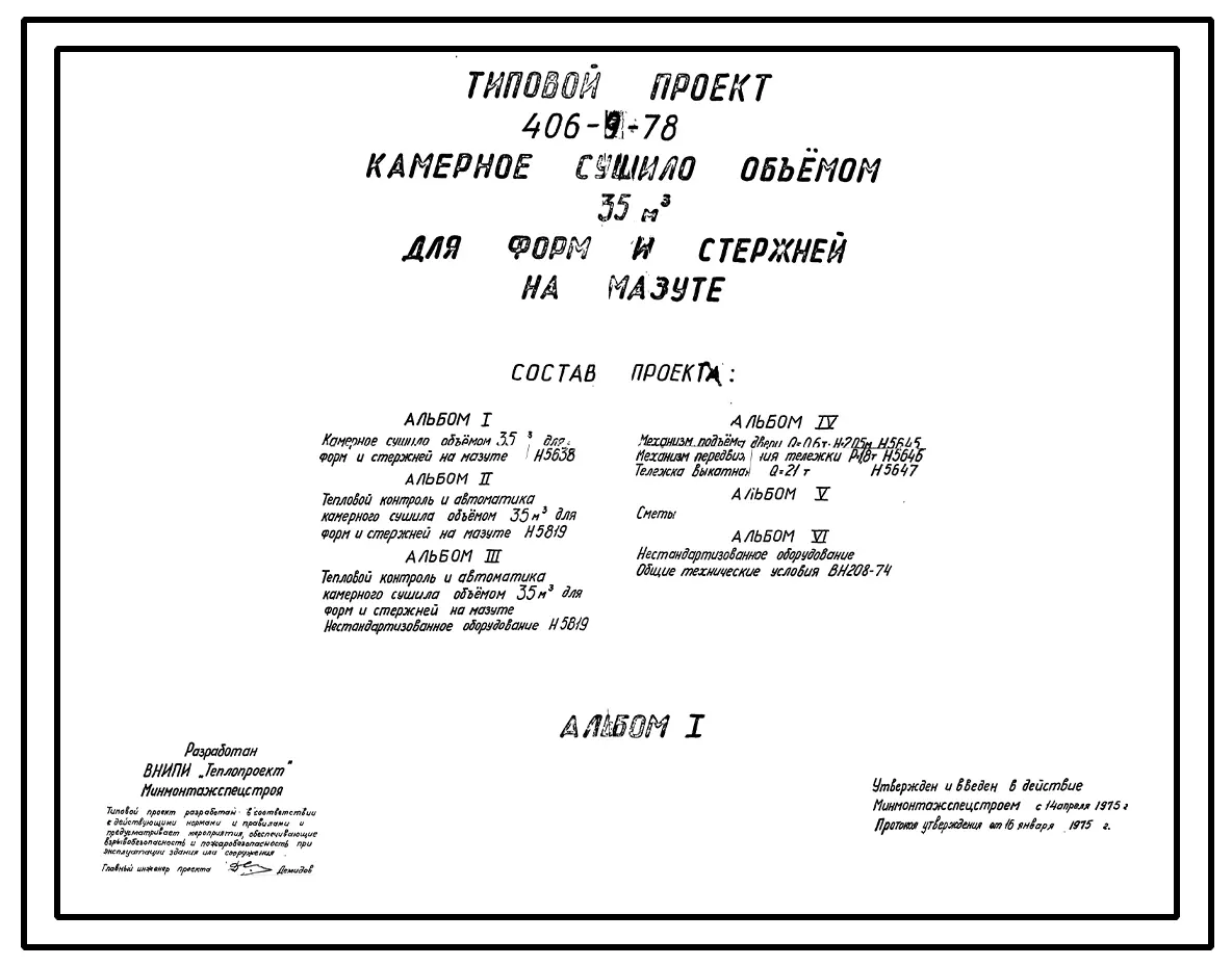 Типовой проект 406-9-78 Камерное сушило объемом 35 м3 для форм и стержней на мазуте
