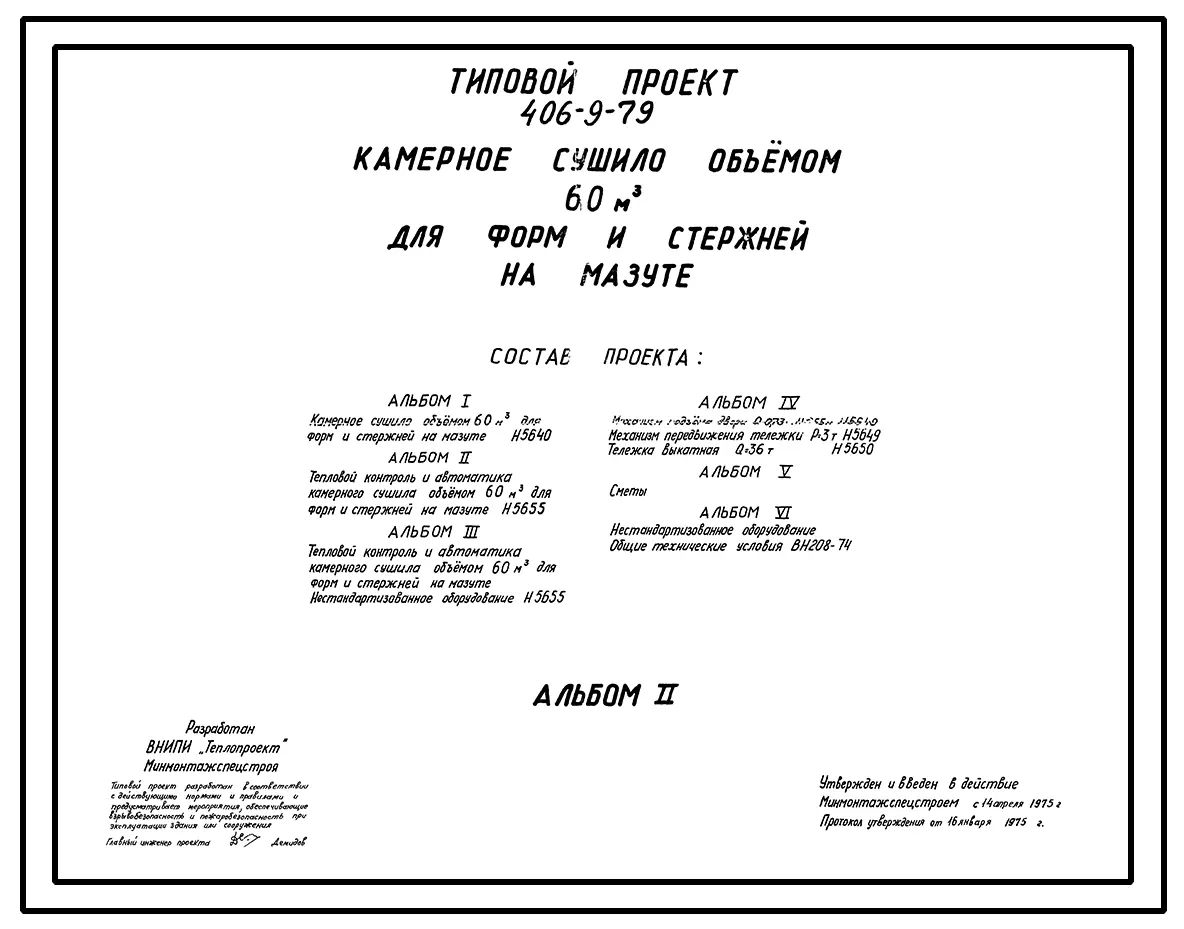 Типовой проект 406-9-79 Камерное сушило объемом 60 м3 для форм и стержней на мазуте