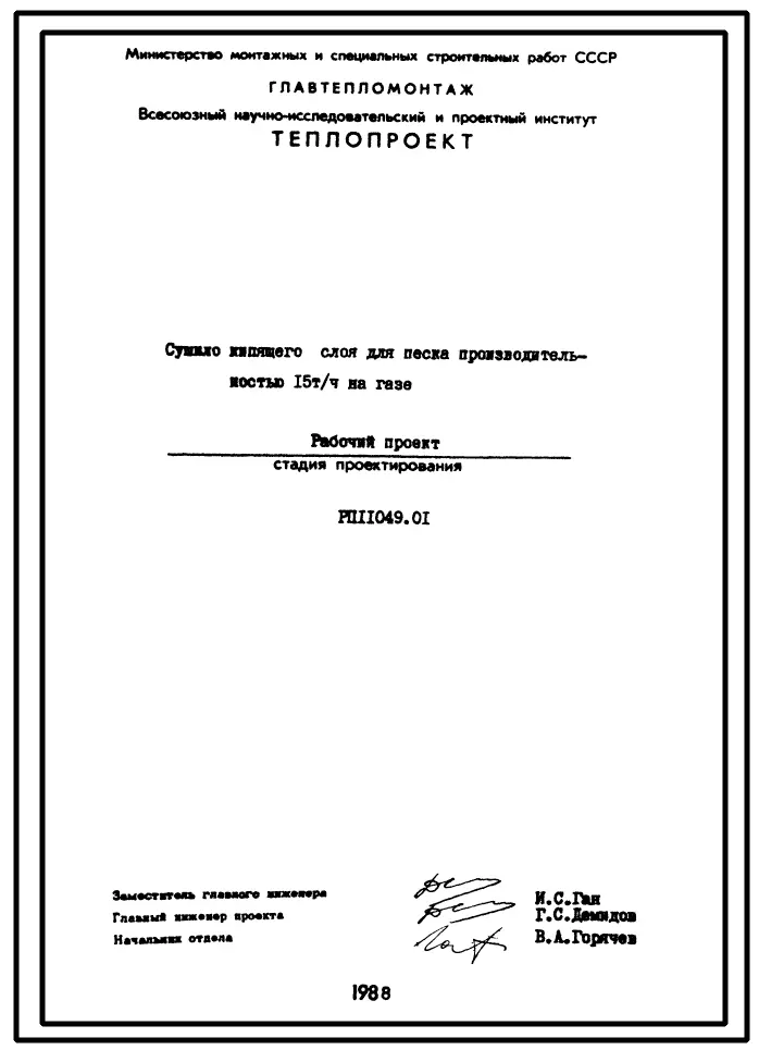 Проект 11049.01 Сушило кипящего слоя производительностью 15т/ч на газе для песка.