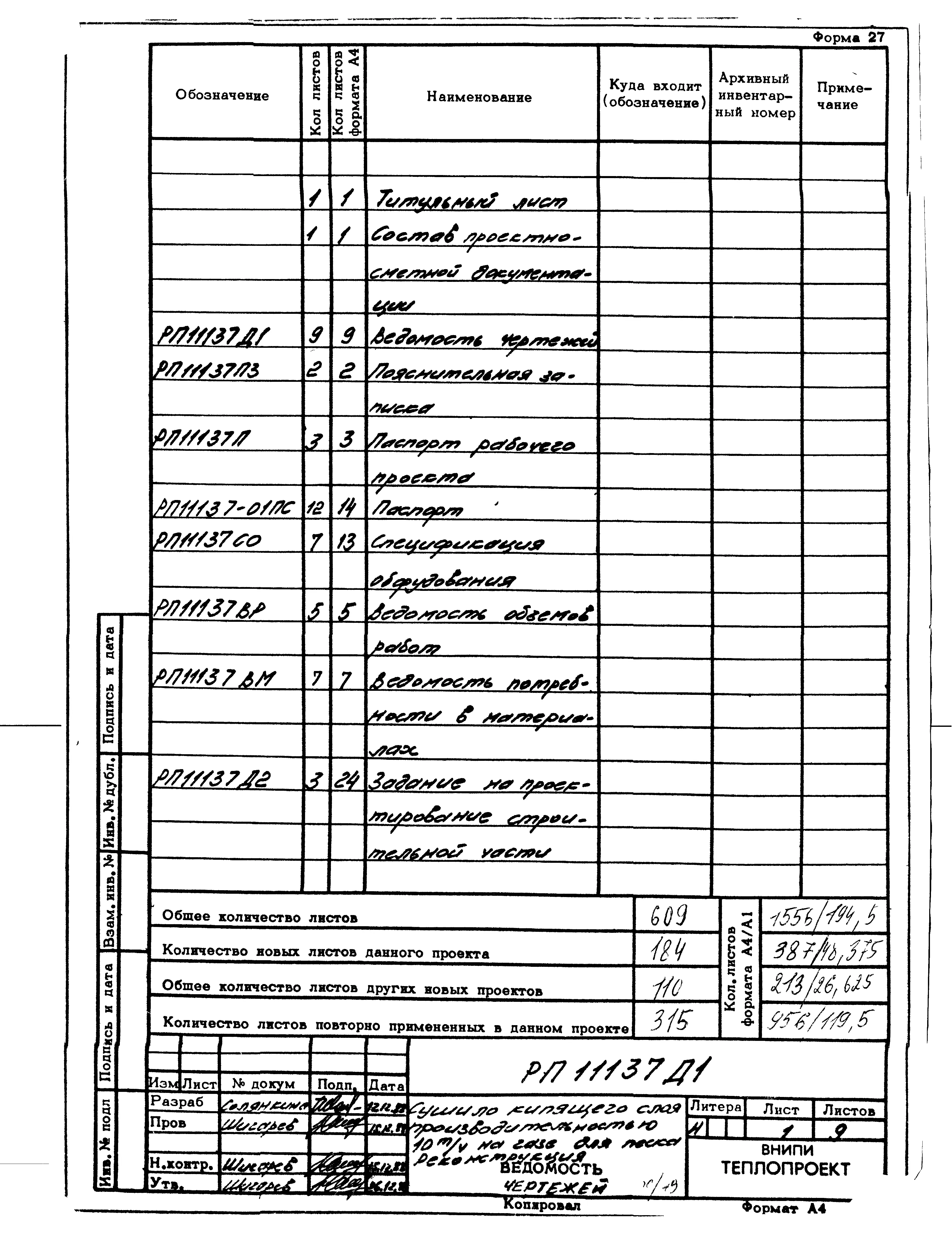 В нашем архиве более 27 тысяч проектов с документацией и более 120 тысяч паспортов проектов без типовых проектов. Паспорт проекта -это краткое описание типового проекта . Паспорт проекта всегда разрабатывался вместе с проектом и являлся кратким его описанием. Обычно объем паспорта- 1-3 листа, но в каждом конкретном случае размер и содержание паспорта определял разработчик проекта.