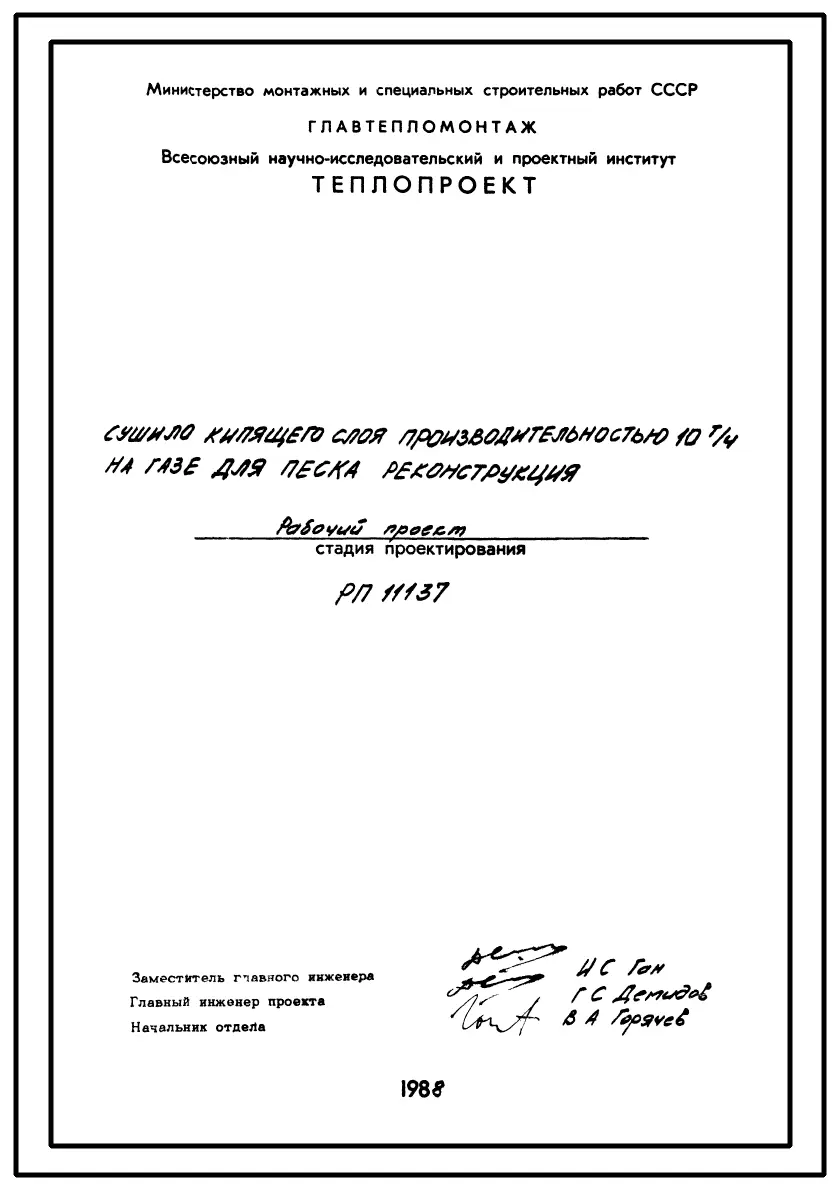 Проект 11137 Сушило кипящего слоя производительностью 10 т/ч на газе для песка.Реконструкция.