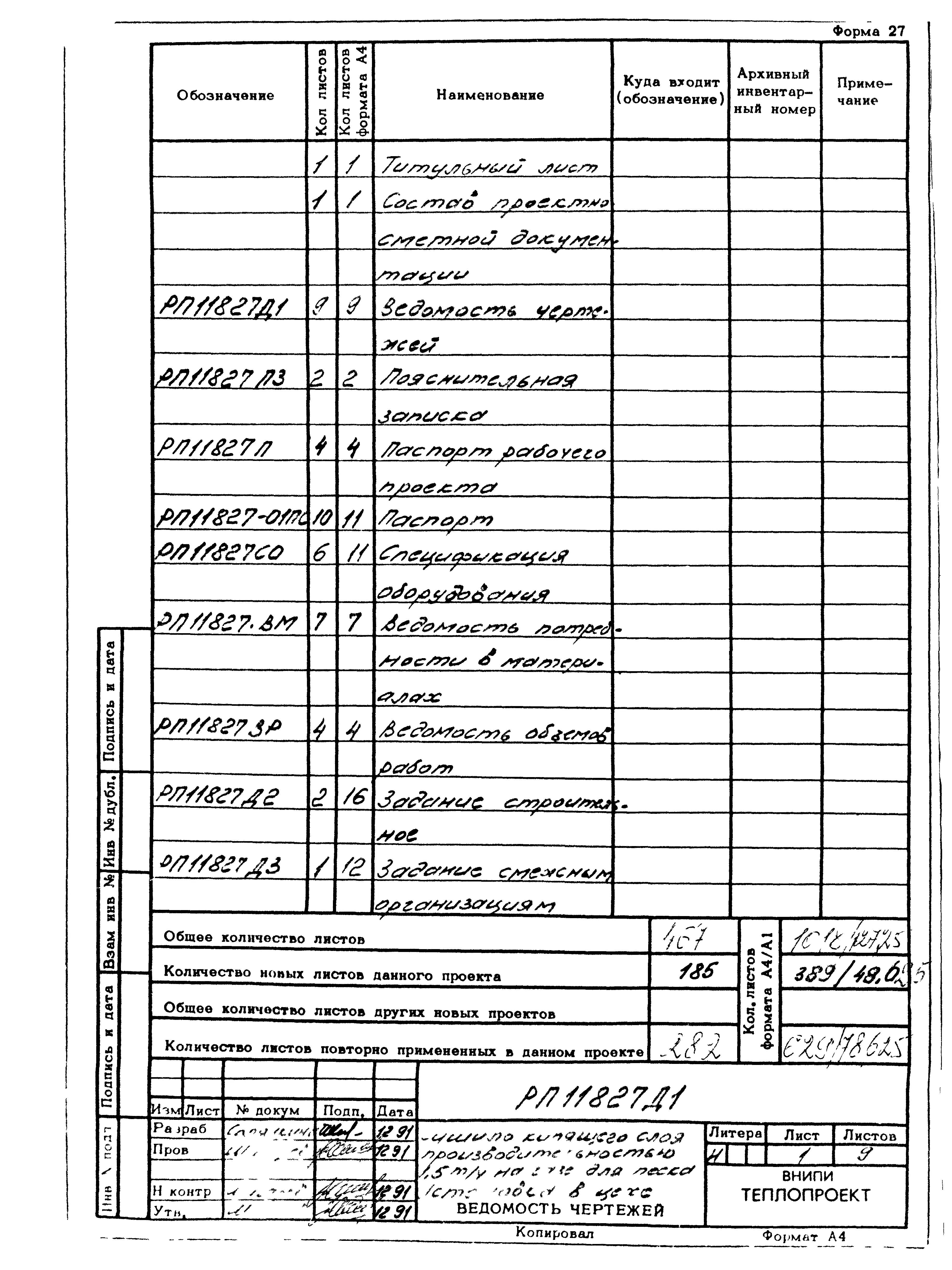 В нашем архиве более 27 тысяч проектов с документацией и более 120 тысяч паспортов проектов без типовых проектов. Паспорт проекта -это краткое описание типового проекта . Паспорт проекта всегда разрабатывался вместе с проектом и являлся кратким его описанием. Обычно объем паспорта- 1-3 листа, но в каждом конкретном случае размер и содержание паспорта определял разработчик проекта.