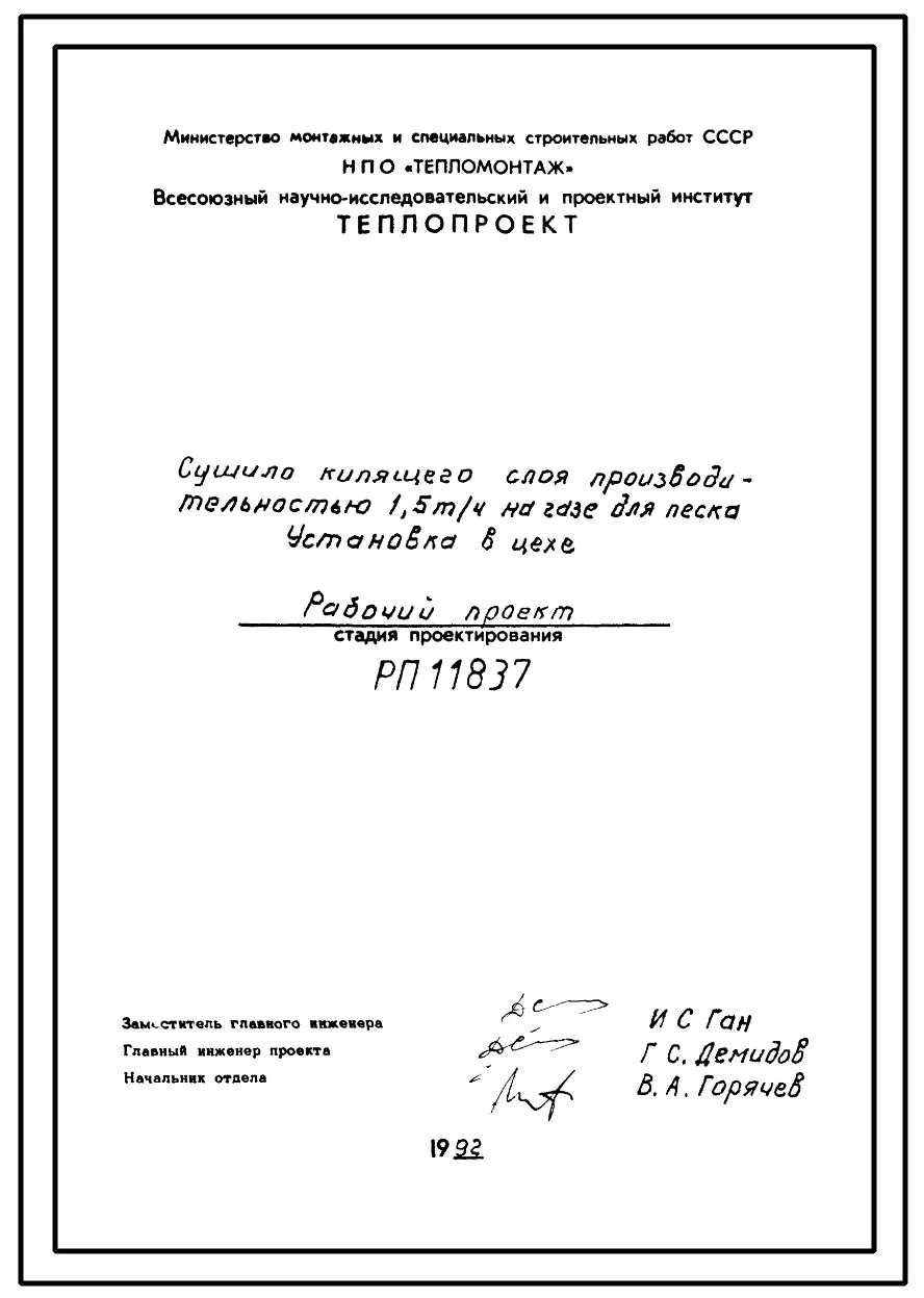 Проект 11837 Сушило кипящего слоя производительностью 1.5 т/ч на газе для песка