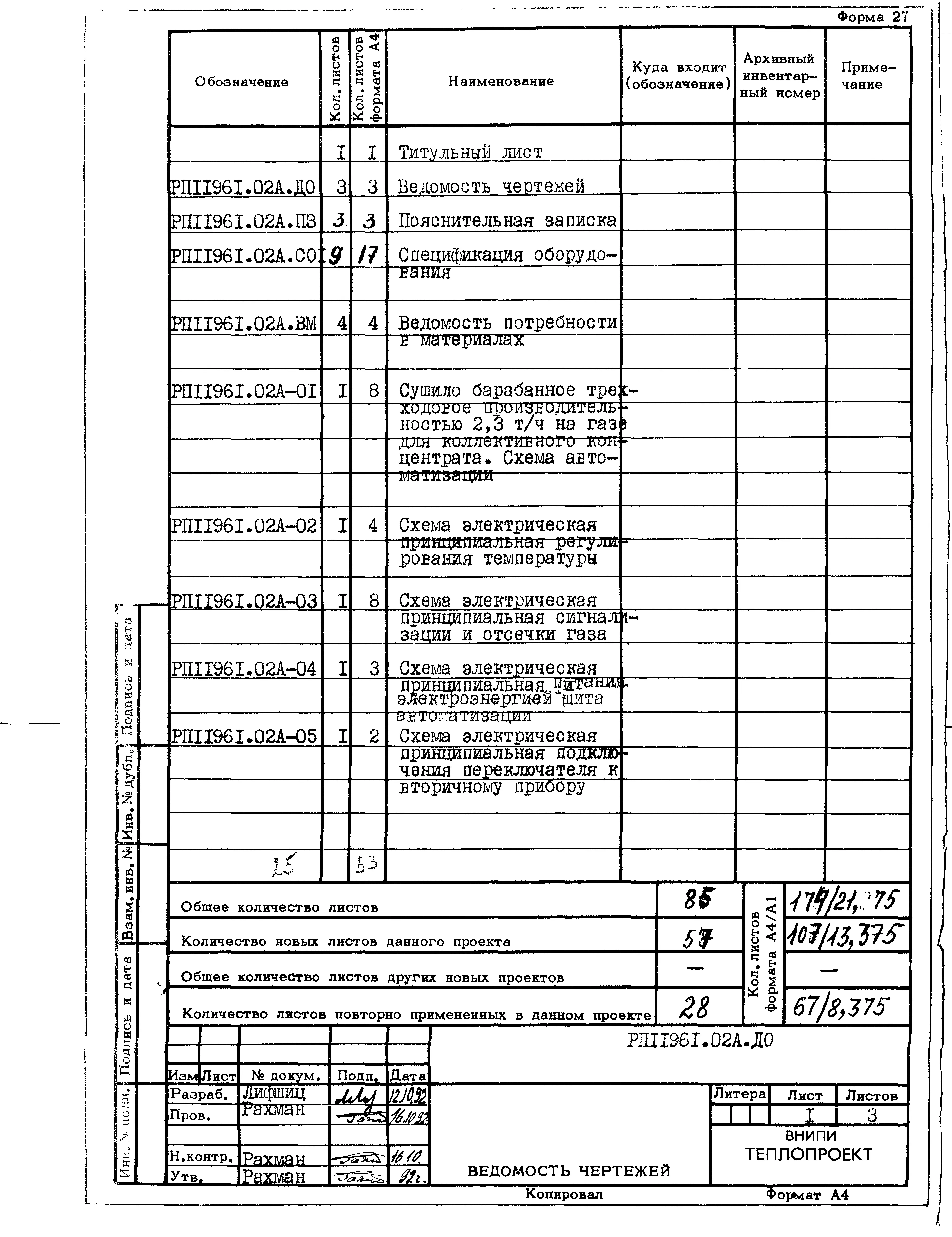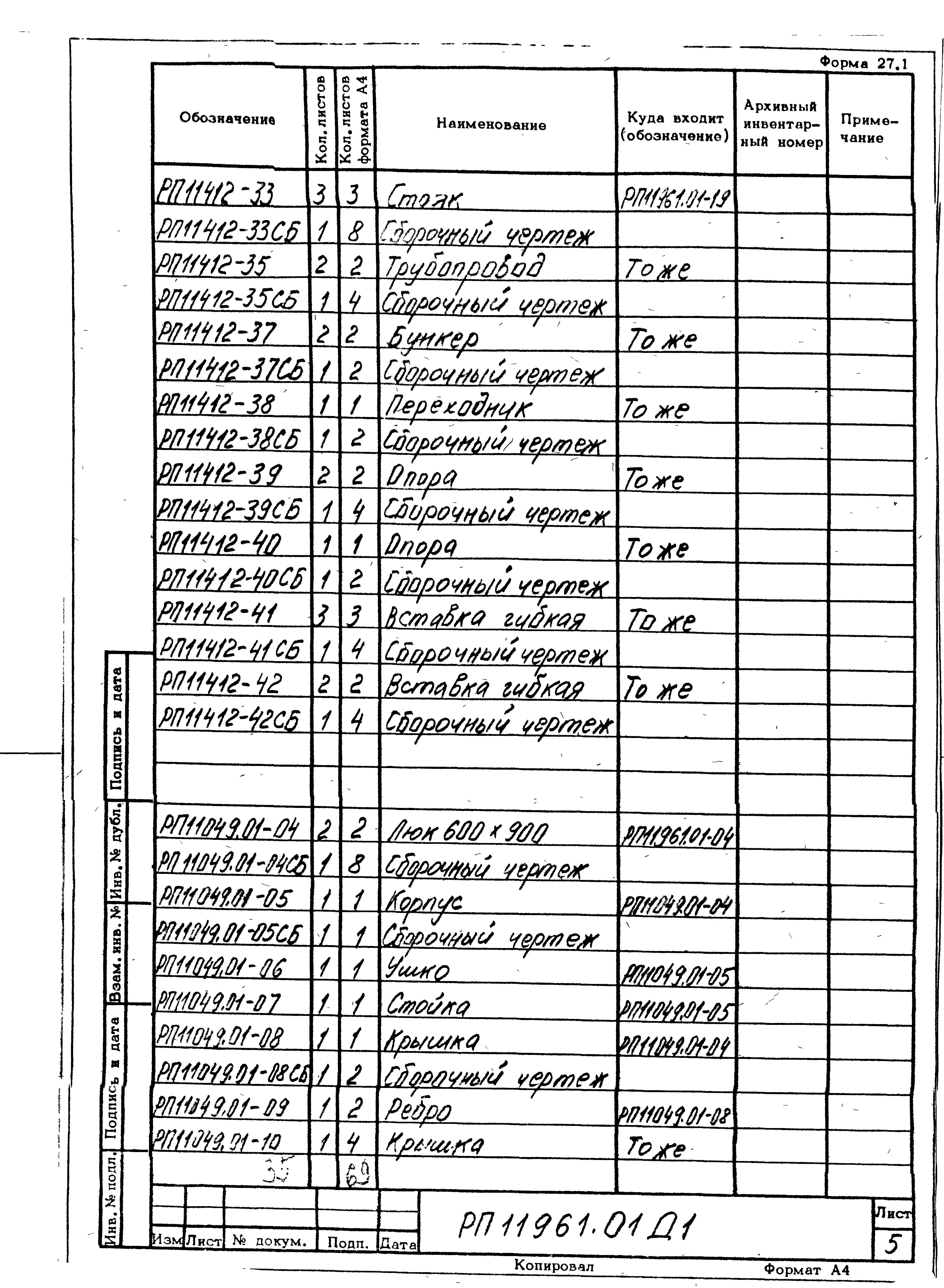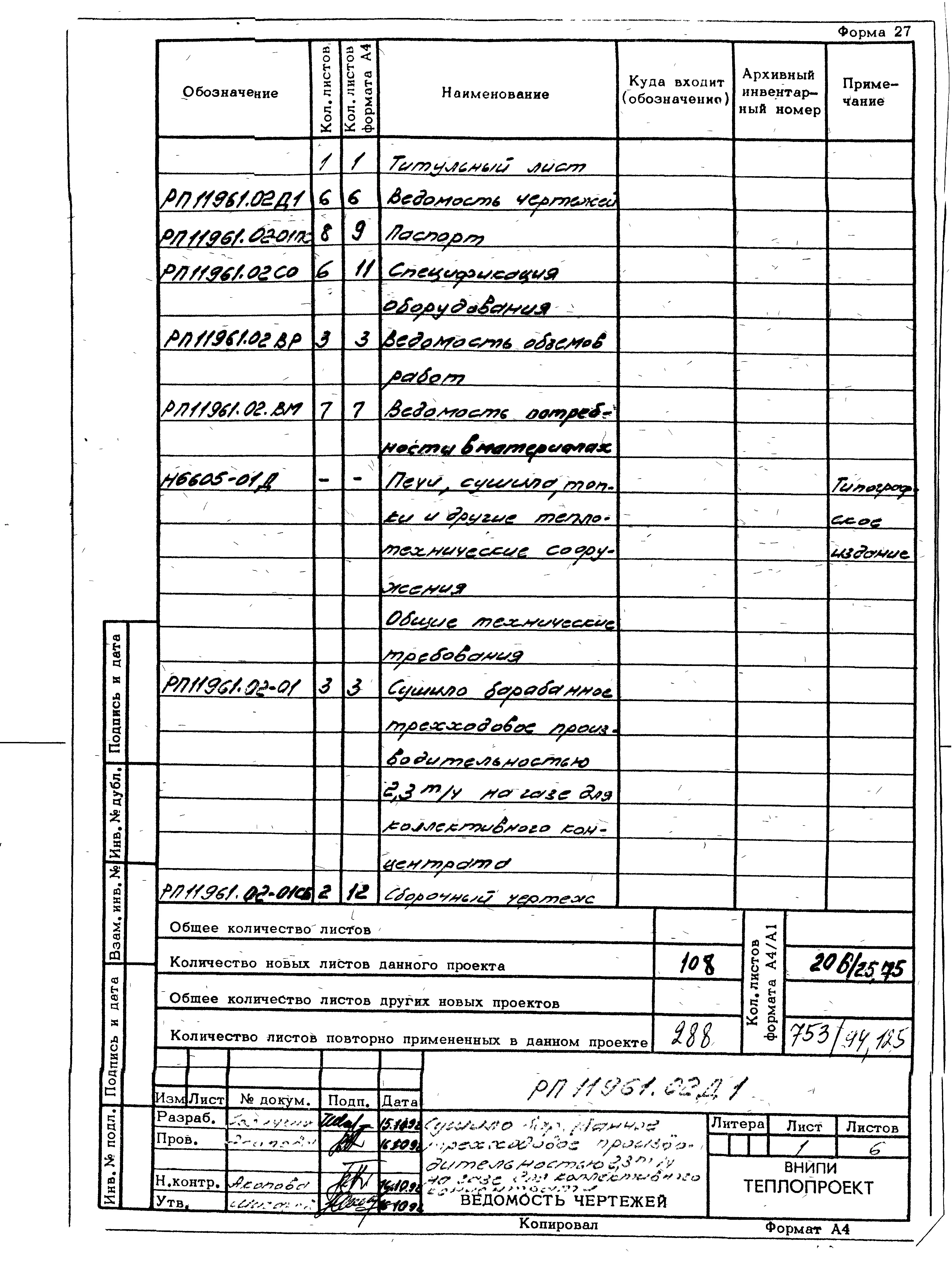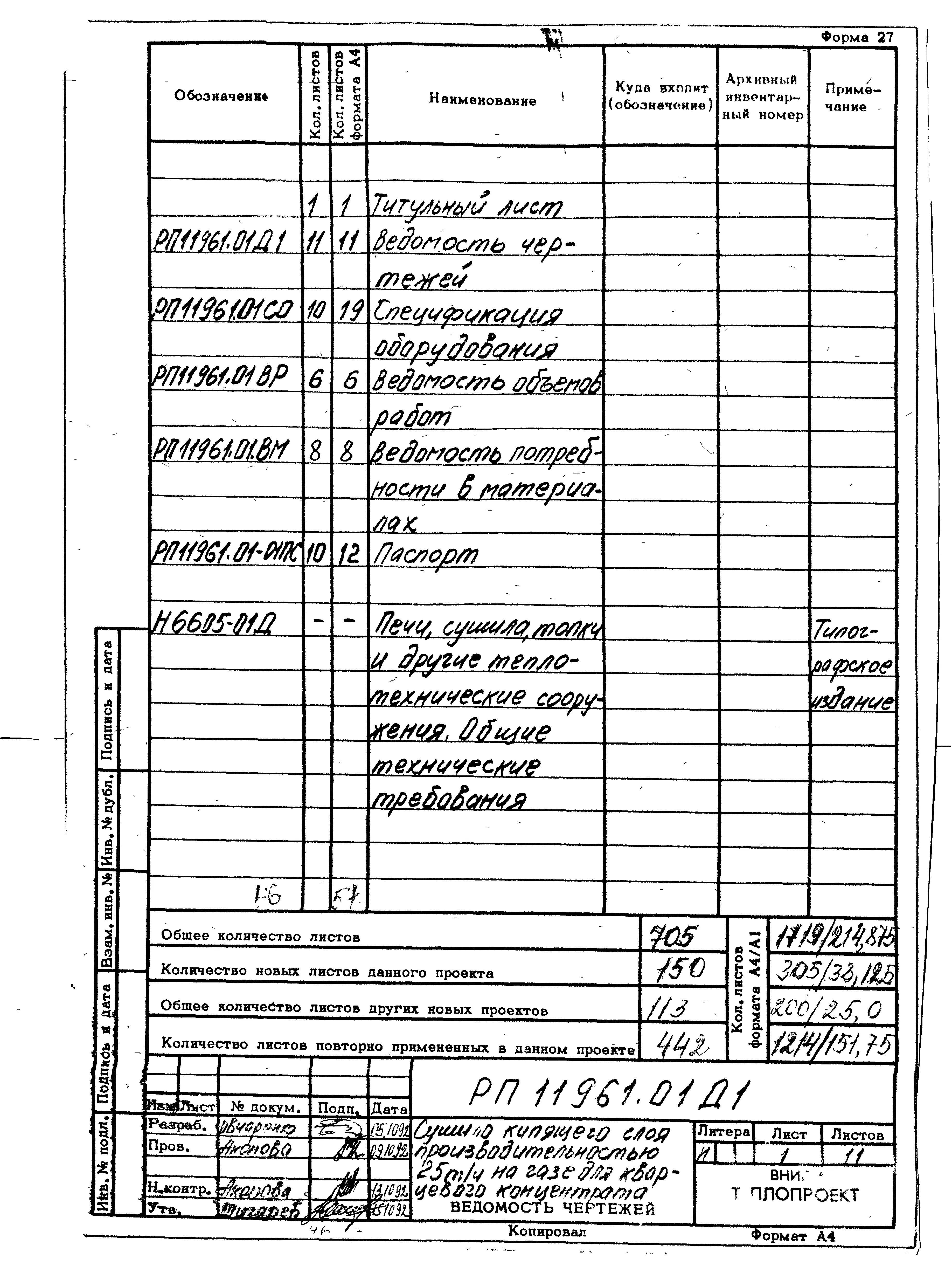 В нашем архиве более 27 тысяч проектов с документацией и более 120 тысяч паспортов проектов без типовых проектов. Паспорт проекта -это краткое описание типового проекта . Паспорт проекта всегда разрабатывался вместе с проектом и являлся кратким его описанием. Обычно объем паспорта- 1-3 листа, но в каждом конкретном случае размер и содержание паспорта определял разработчик проекта.