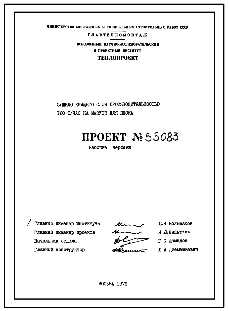 Проект 55083 Сушила кипящего слоя производительностью 100 т/час на мазуте для песка