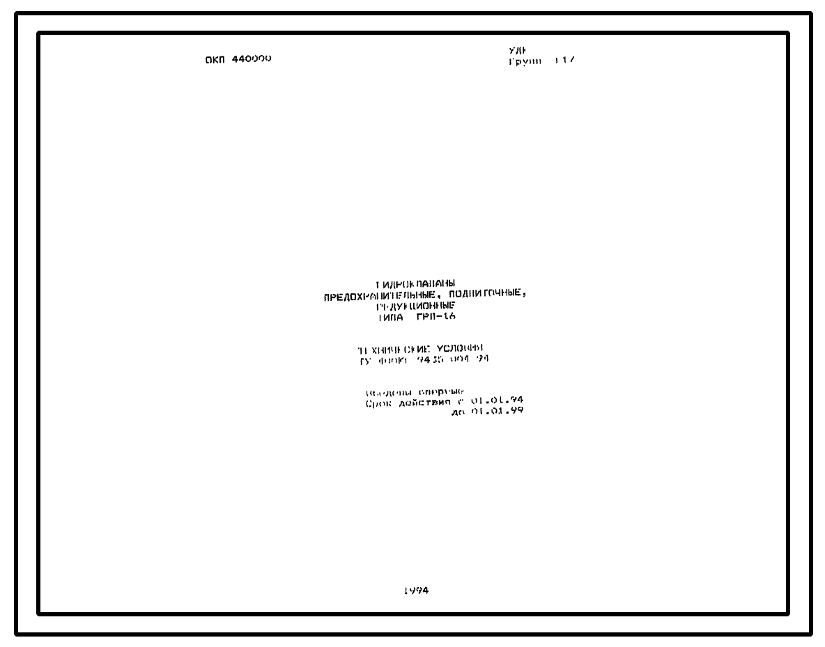 Шифр ТУ400КГ-9435-004-94 Гидроклапаны предохранительные, редукционные типа ГРП-16