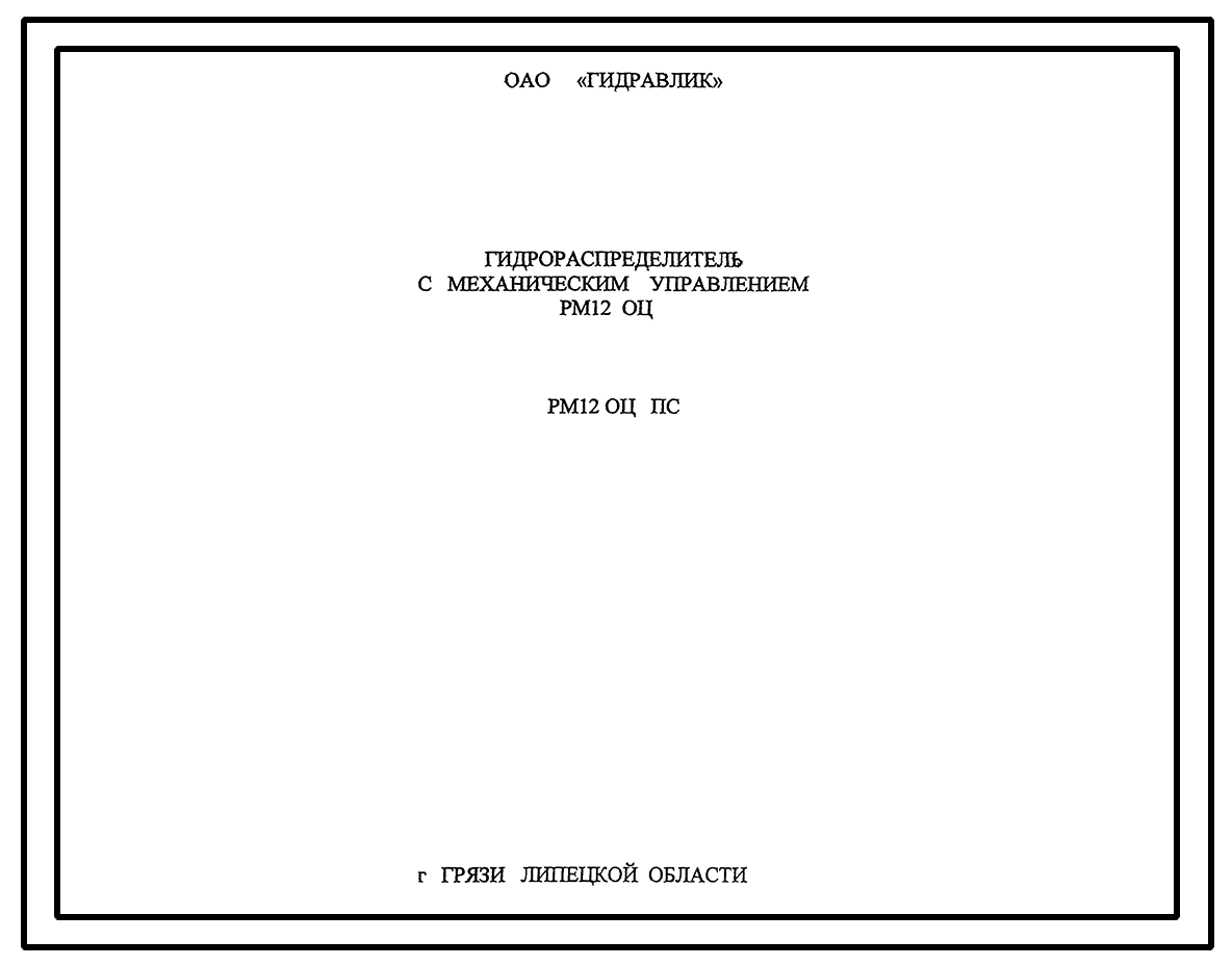 Шифр РМ12ОЦ.ПС Гидрораспределитель с механическим управлением РМ12 ОЦ