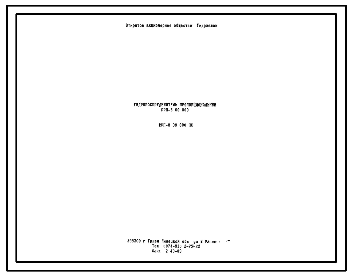 Шифр РРП-8.00.000.ПС Гидрораспределитель пропорциональный РРП-8.00.000