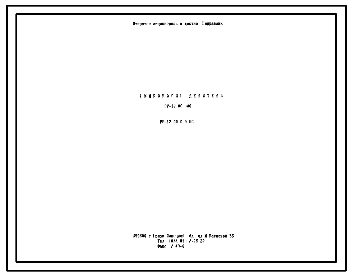 Шифр РР-12.00.000 Гидрораспределитель РР-12.00.000