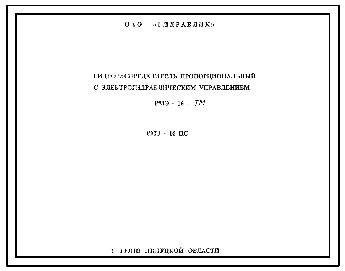 Шифр РМЭ-16.ПС Гидрораспределитель пропорциональный с электрогидравлическим управлением РМЭ-16...ТМ