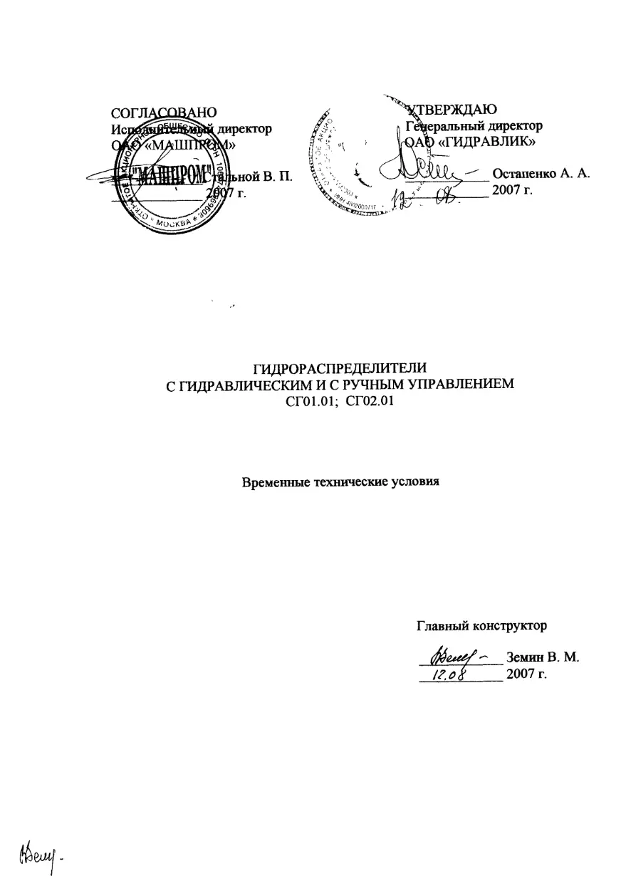 Шифр СГ01.01;СГ02.01 Гидрораспределители с гидравлическим и с ручным управлением СГ01.01;СГ02.01