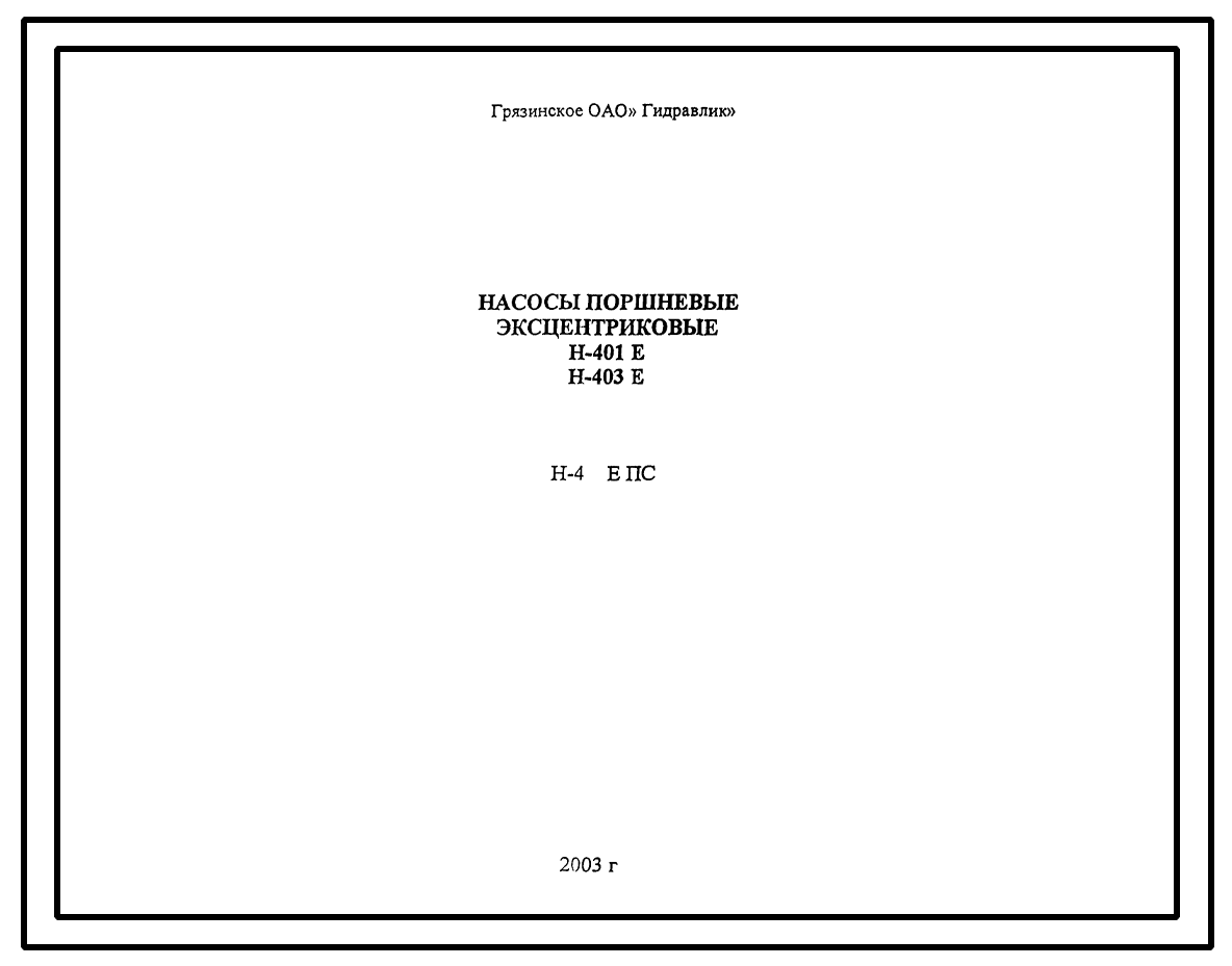 Шифр Н-4…Е ПС Насосы поршневые эксцентриковые Н-401Е; Н-403Е