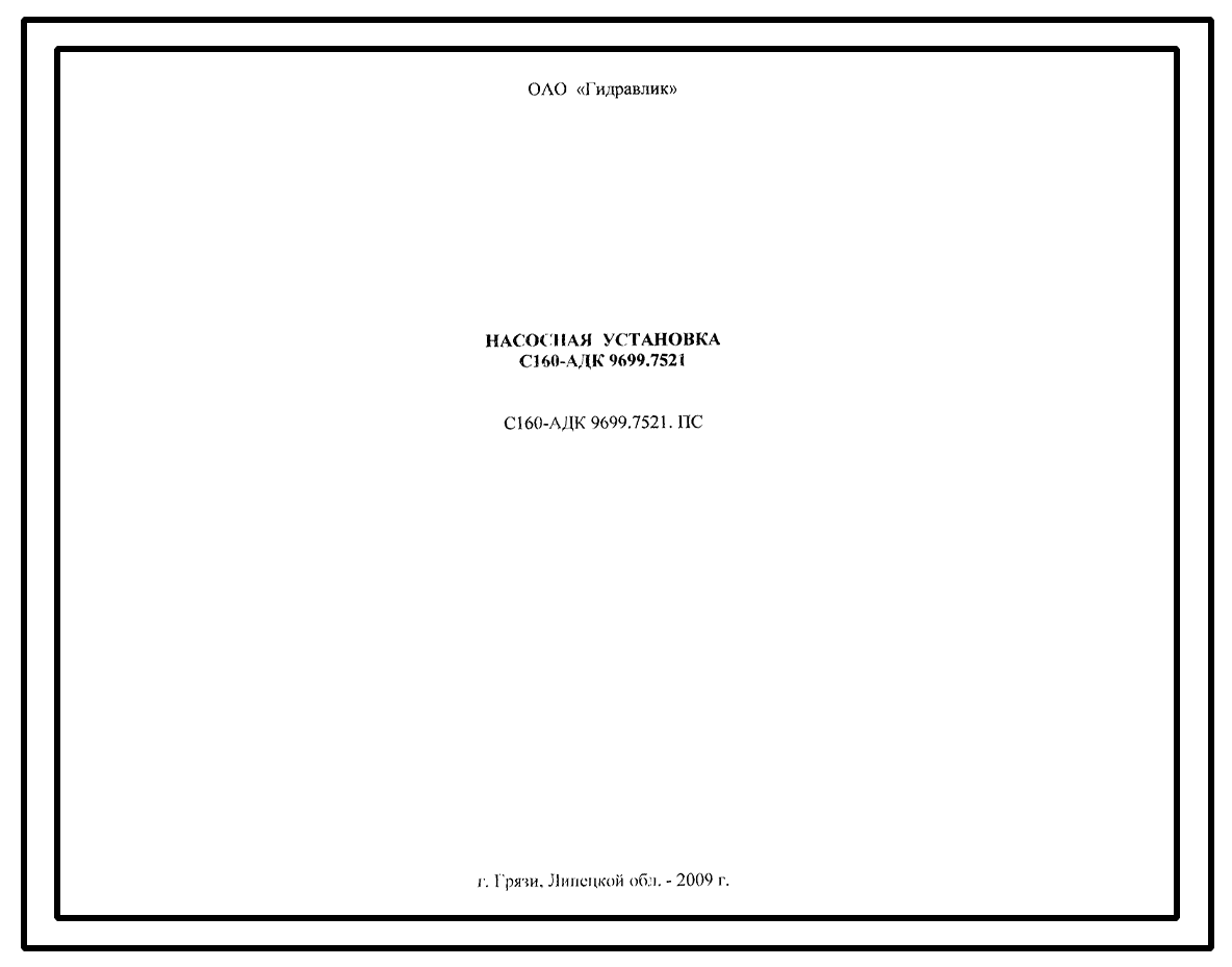 Шифр С160-АДК.9699.7521.ПС Насосная установка С160-АДК.9699.7521