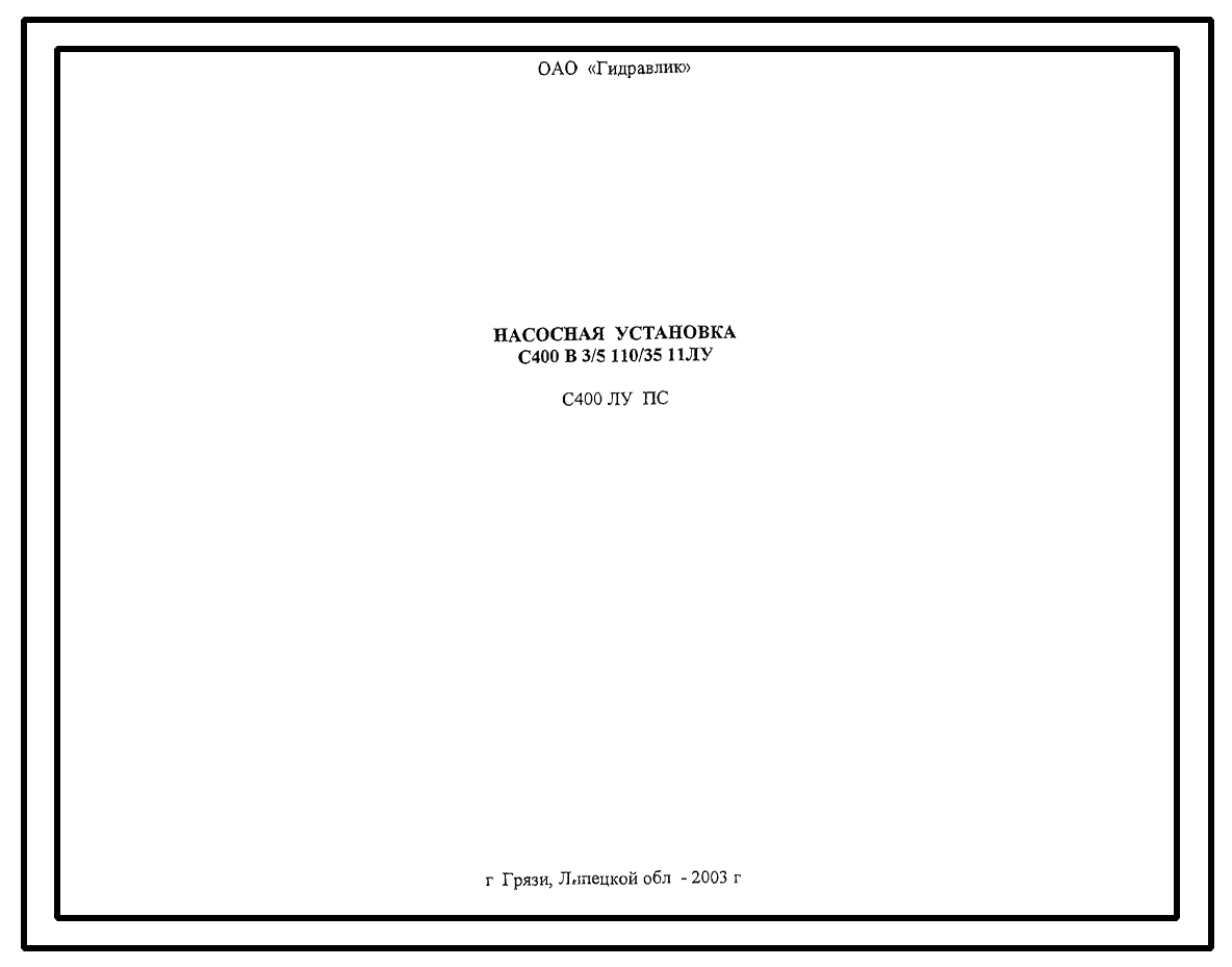 Шифр С400.ЛУ.ПС Насосная установка С400.В.3/5.110/35.11ЛУ