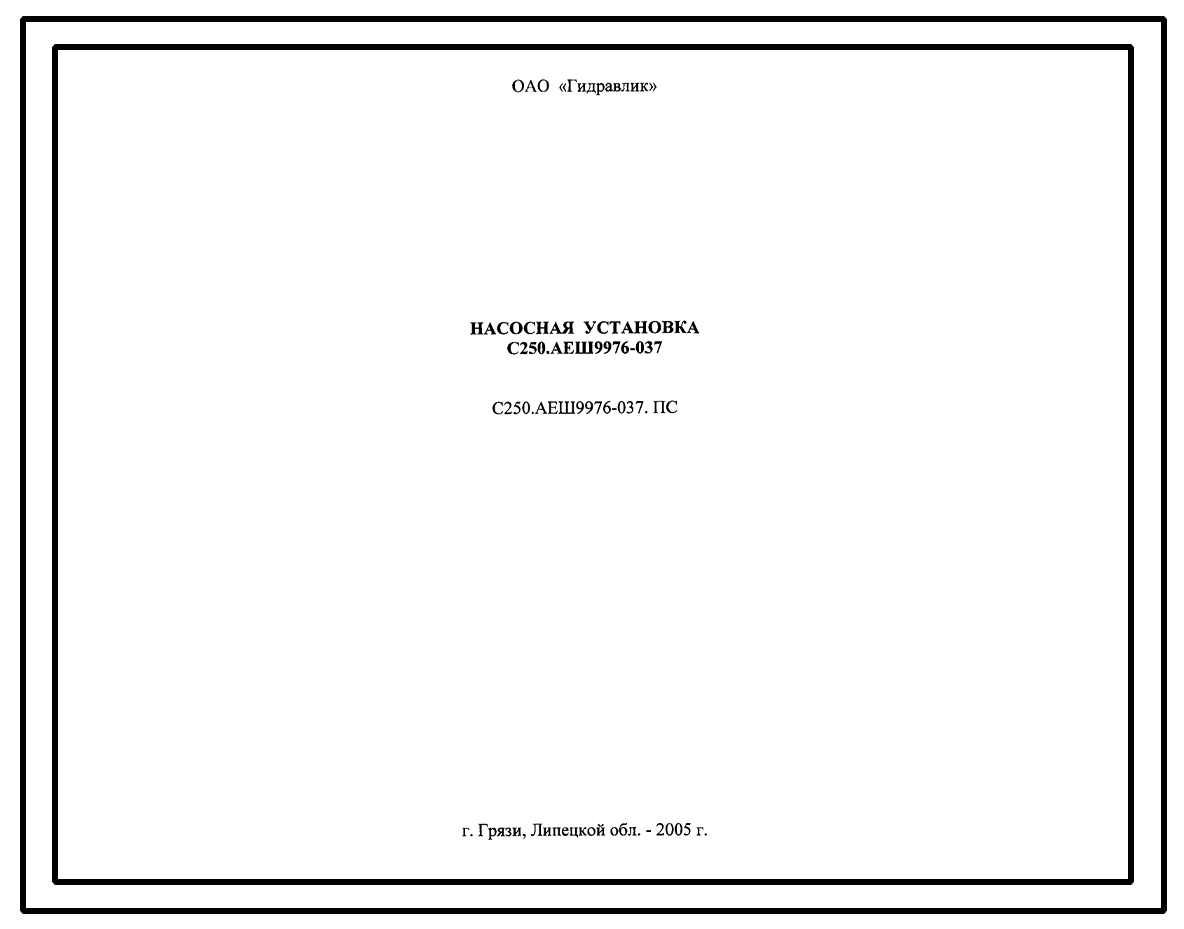 Шифр С250.АЕШ9976-037.ПС Насосная установка С250.АЕШ9976-037