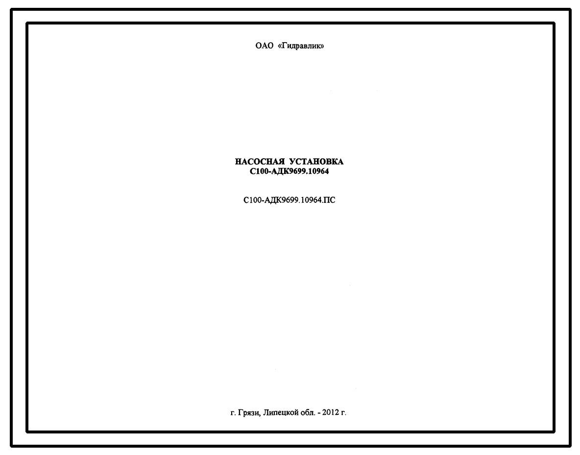 Шифр С100-АДК9699.10964.ПС Насосная установка С100-АДК9699.10964