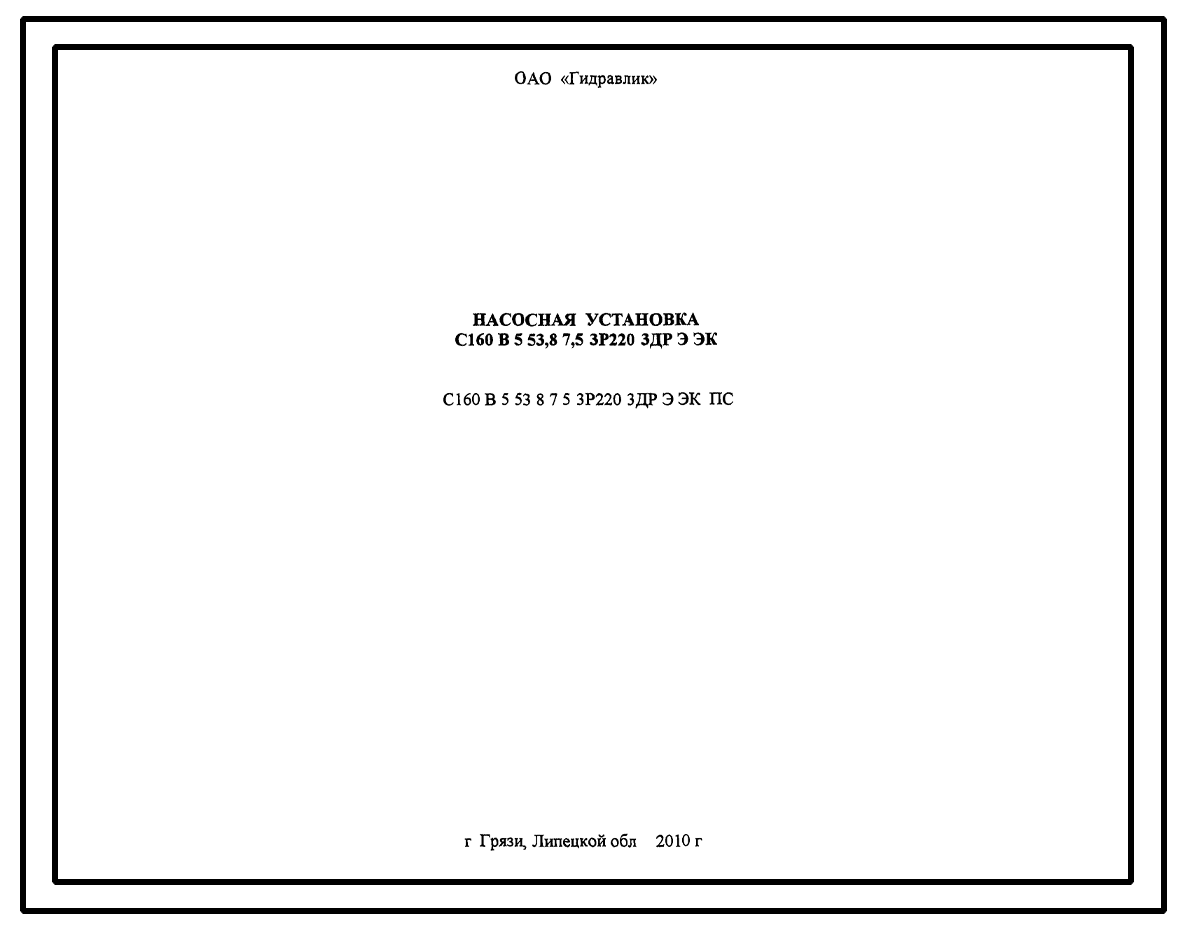 Шифр С160В5.53,8.7,5.3Р220.3ДР.Э.ЭК.ПС Насосная установка С160В5.53,8.7,5.3Р220.3ДР.Э.ЭК